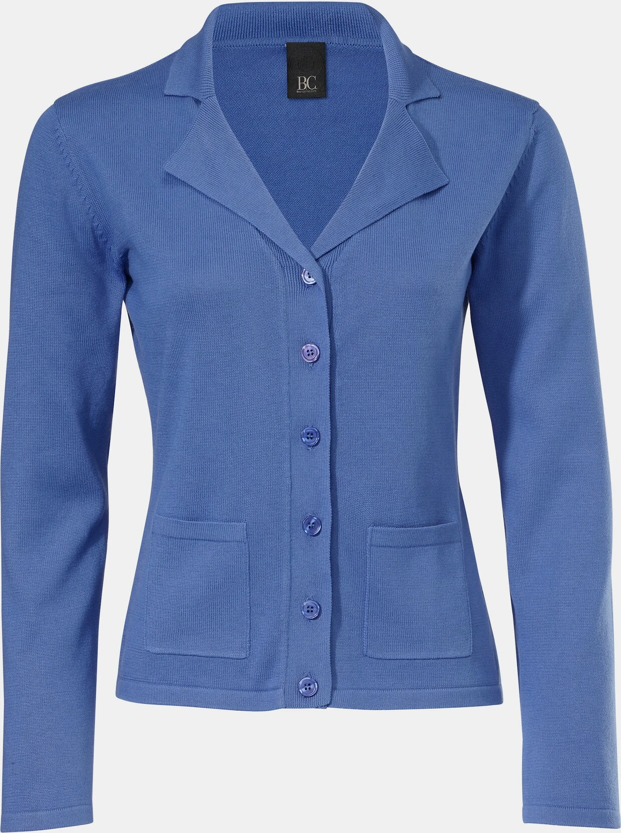 Feinstrickjacke Softer Feinstrick in figurbetonter Form, mit Reverskragen, Knopfverschluss und Langarm.
