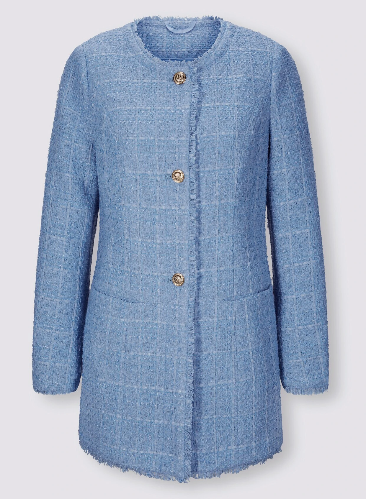 Gehrock In attraktiver Bouclé-Optik. Mit modischen Fransen, Eingrifftaschen, Rundhalsausschnitt und kurzer Knopfleiste. Formgebende Nähte. Unterstützt die Initiative Cotton made in Africa.