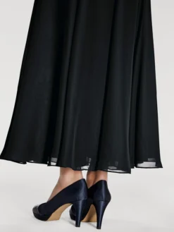 Godetrock Vielseitig kombinierbar zu festlichen Anlässen. Transparenter Chiffon, gefüttert mit Satin. Bodenlang, mit schmaler Hüfte und weit schwingendem Saum.