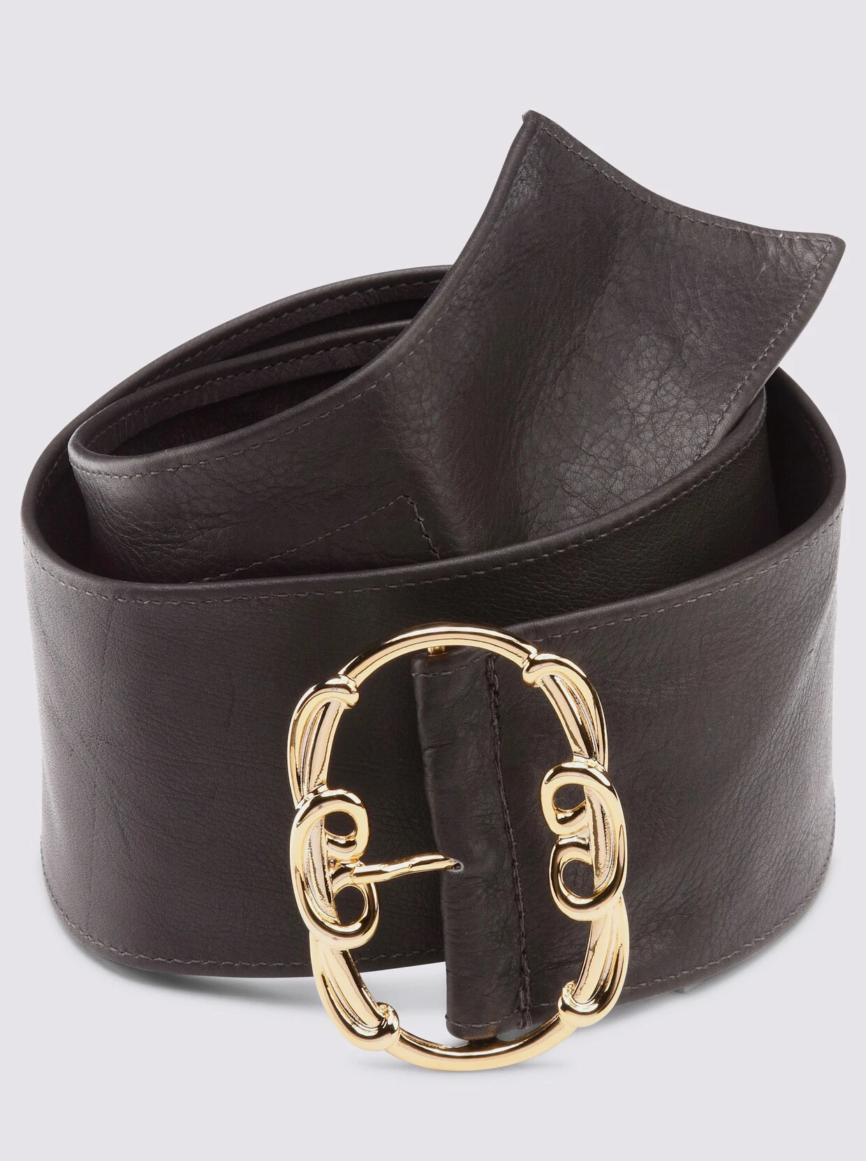 Gürtel Kombistarkes Accessoire in modischer Form und mit goldfarbener Schmuckschließe. Besonders weiches Rindleder. Breite ca. 8 cm.