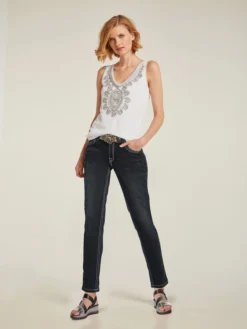 Jeans Lässig im angesagten Boyfriend-Style, mit modischen Destroyed-Effekten. Mit geradem Bein und Eingrifftaschen. Passperfekte Stretchqualität. Comfort Fit. Leicht vertiefte Leibhöhe. Fußweite ca. 34 cm.