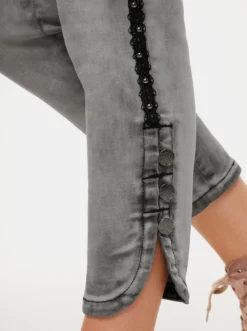 Jeans Mit modischen Details wie Spitze, Zierperlen und Nieten. Figurnahe 5-Pocket-Röhre im Used-Look. Perfekt im Sitz dank hochwertiger Stretch-Qualität. Fußweite ca. 33 cm.