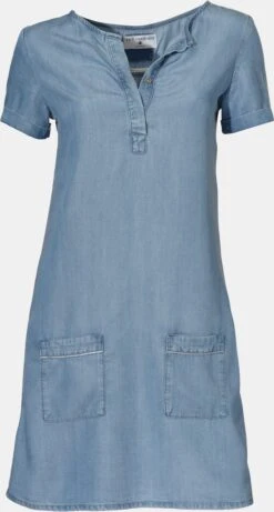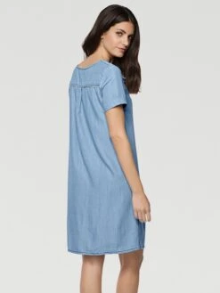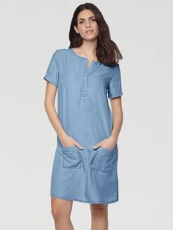 Jeans-Kleid Modischer Casual-Look. Angenehme, pflegeleichte Qualität. Figurumspielend, mit Kurzarm und aufgesetzten Taschen. Rundhalsausschnitt mit Knopfleiste.