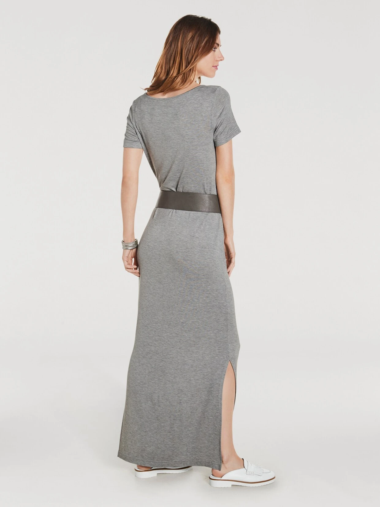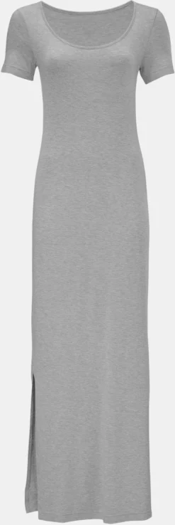 Jersey-Kleid In figurbetonter Longform mit hohen Seitenschlitzen, Rundhalsausschnitt und Kurzarm. Angenehme, pflegeleichte Qualität.