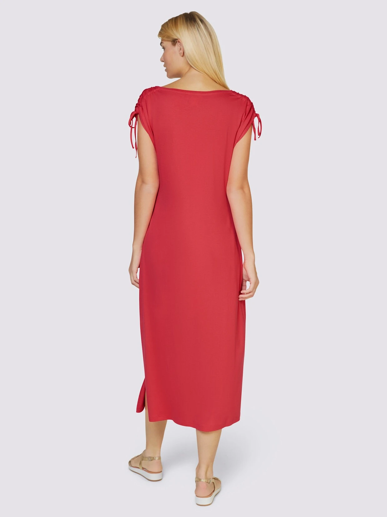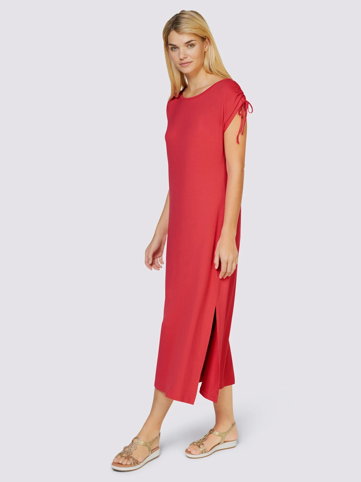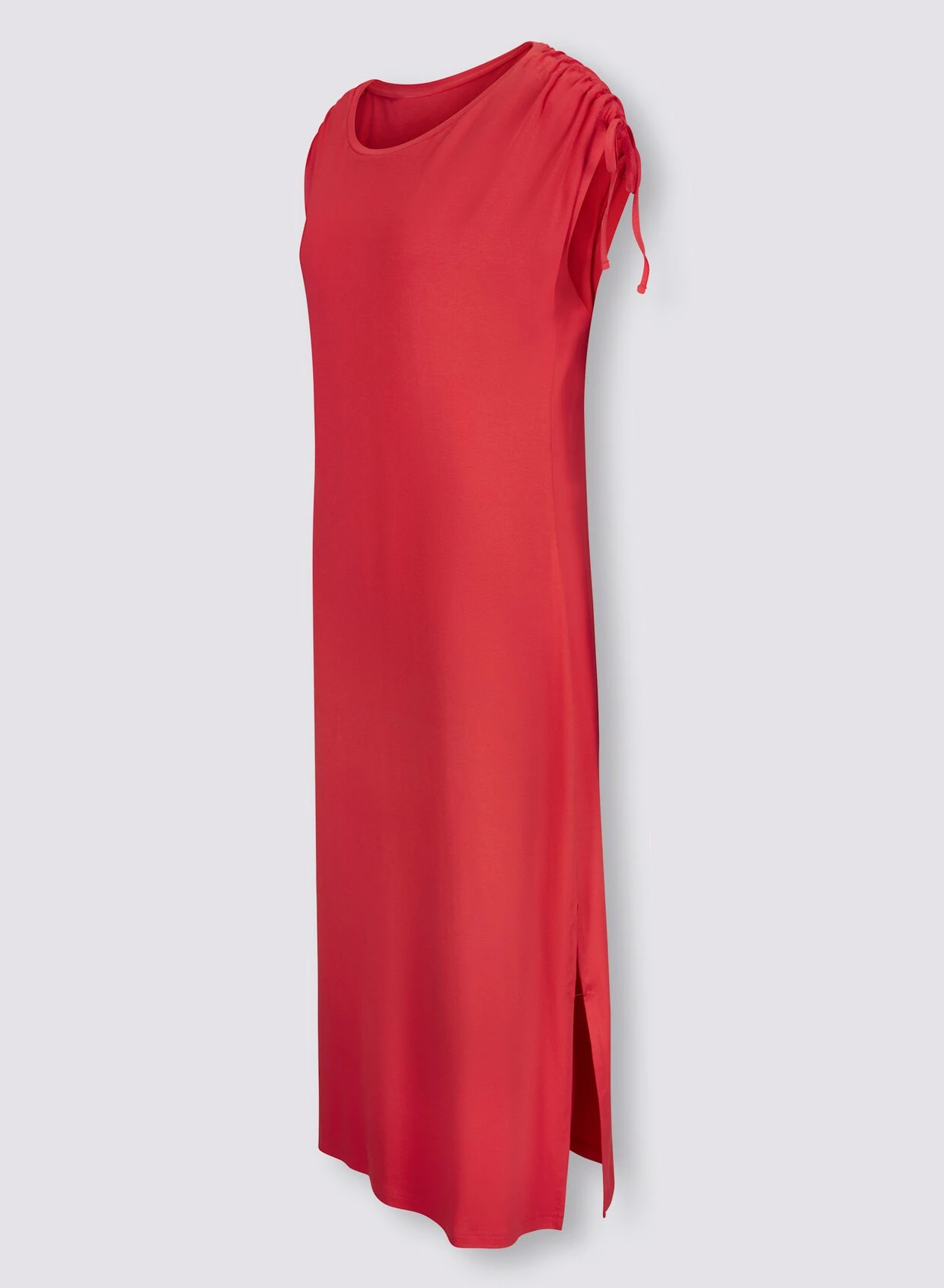 Jersey-Kleid Unkomplizierter Modepartner in pflegeleichter Kofferware – trageangenehm, formstabil und nahezu knitterfrei! Ärmellos, mit Schulterraffung, Rundhalsausschnitt und Seitenschlitz.