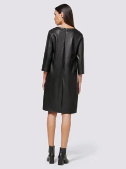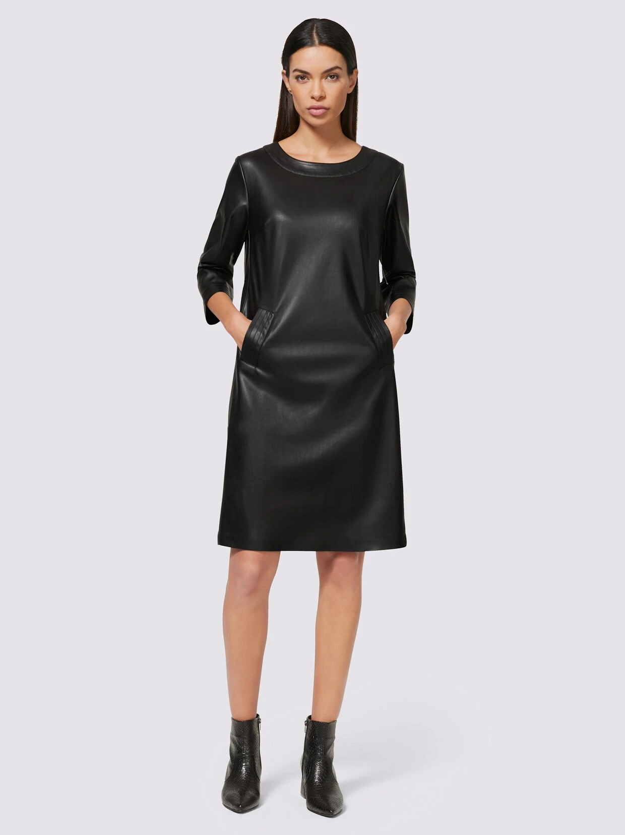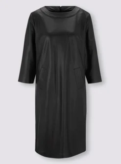 Lederimitat-Kleid Trendteil mit edlem Glanz. Softe Innenseite. Mit aufwendiger Ziersteppung, 3/4-Arm, seitlichen Eingrifftaschen und nahtfeinem Reißverschluss hinten. Mit PU-Beschichtung.