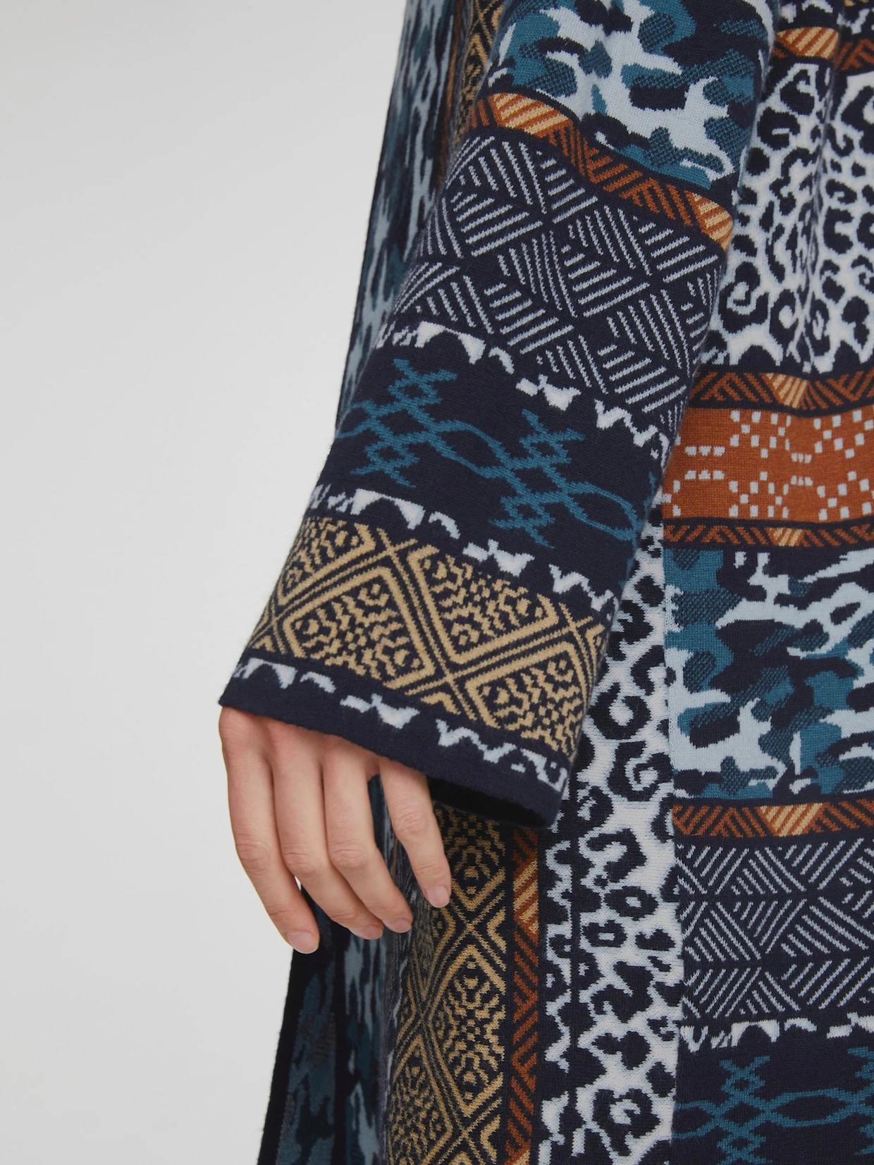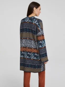 Long-Strickjacke Mustermix mit Wow-Effekt! Angenehm weich, mit viel Wolle und Viskose. Verschlusslose, figurumspielende Variante mit Langarm.