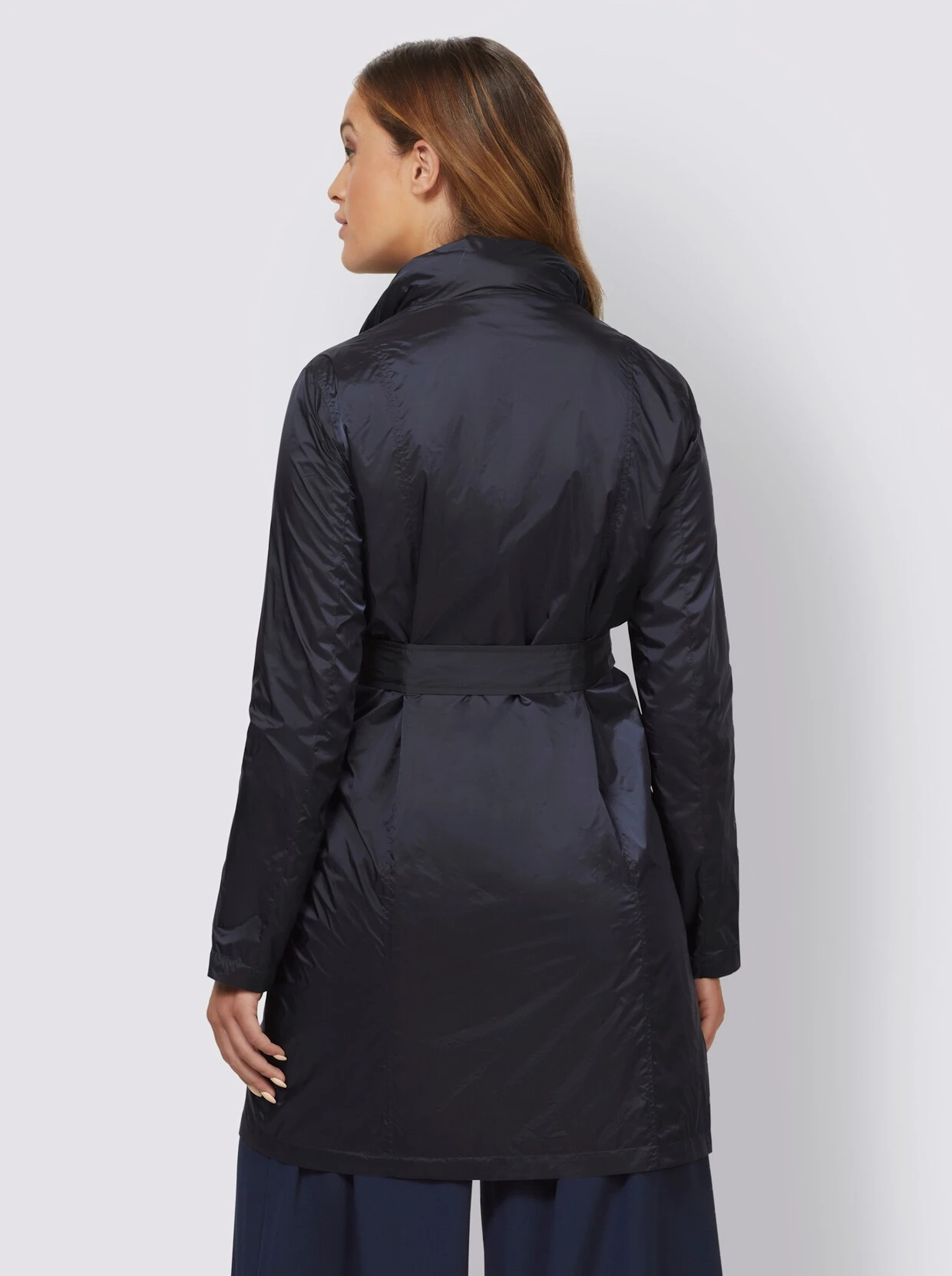 Mantel Perfekter Begleiter für die Überganszeit aus edel changierender Ware. Durchgeknöpft, mit Umlegekragen, Eingrifftaschen und Bindegürtel.