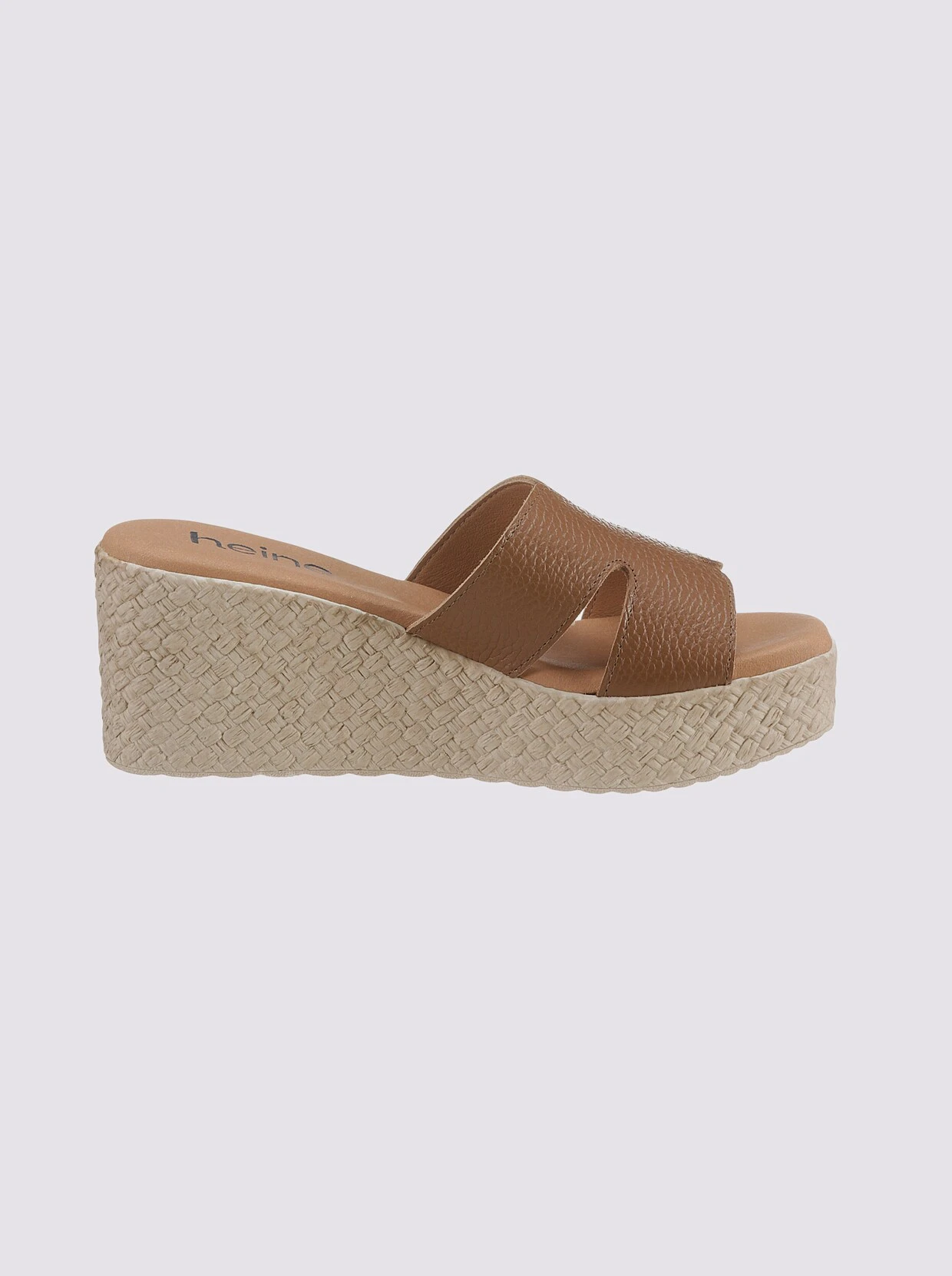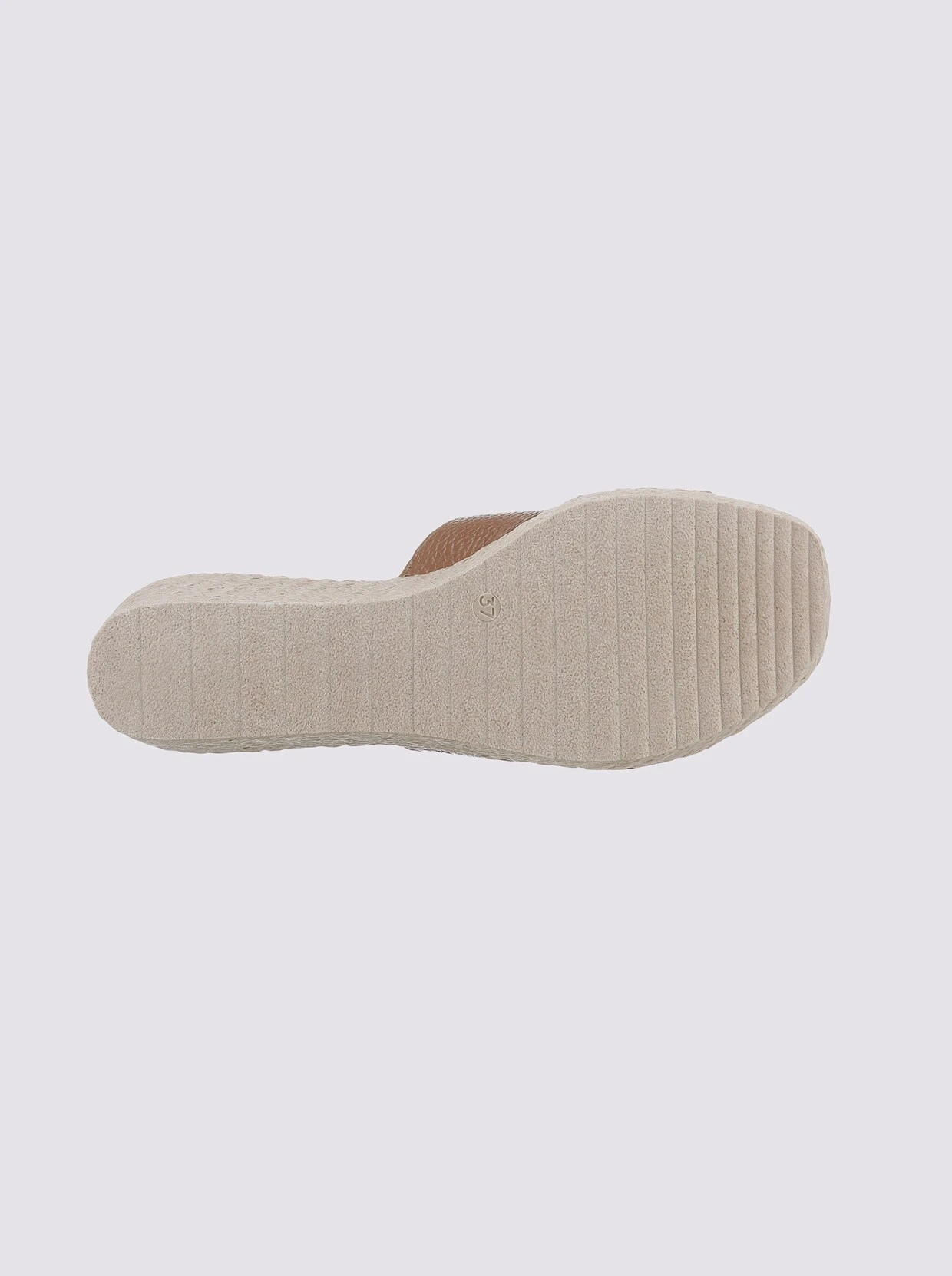 Pantolette Made in Spain. Aus geflochtenem Rind-Nappaleder mit Plateausohle. Innensohle: Textil. Absatzhöhe ca. 65 mm.