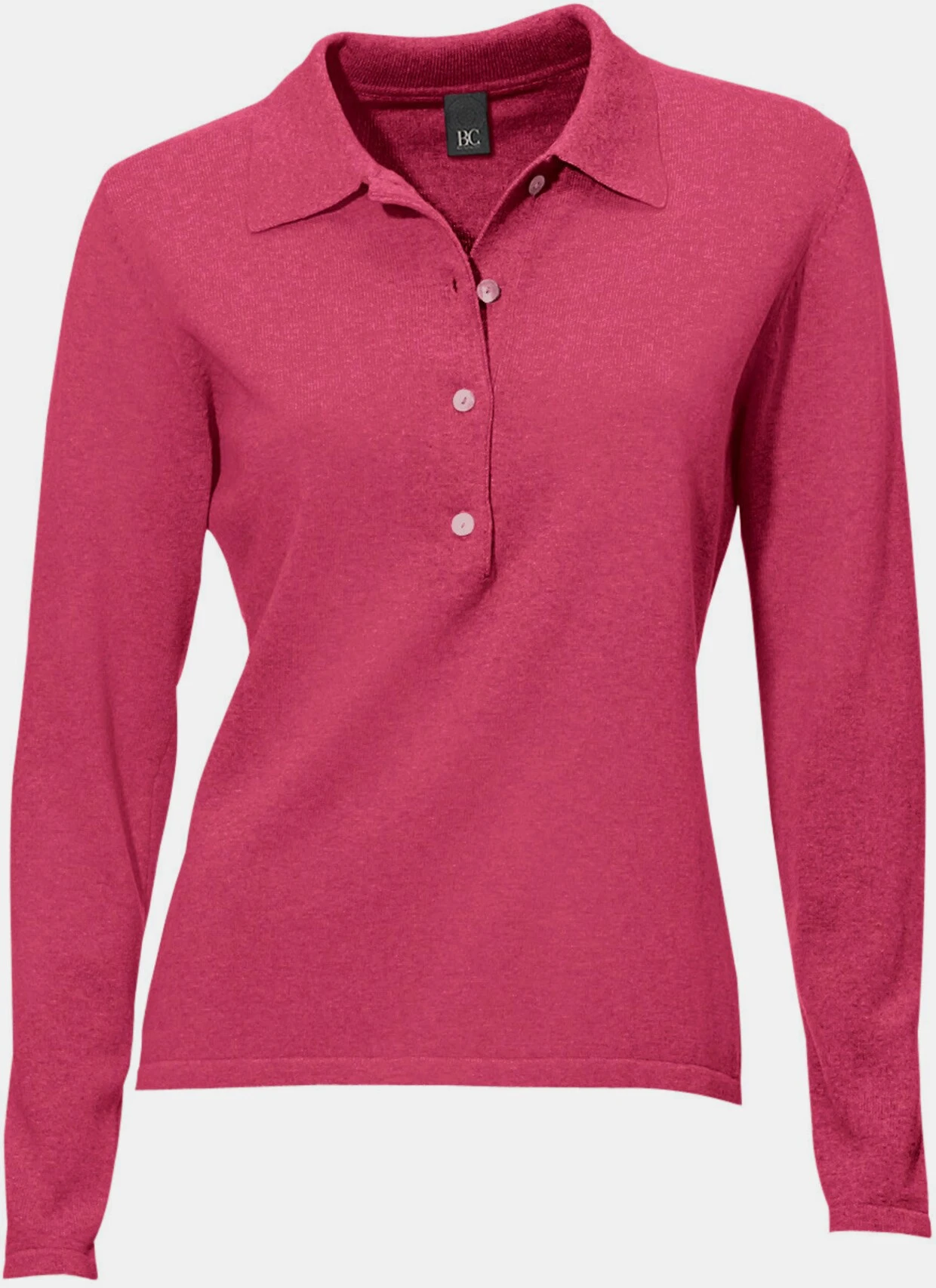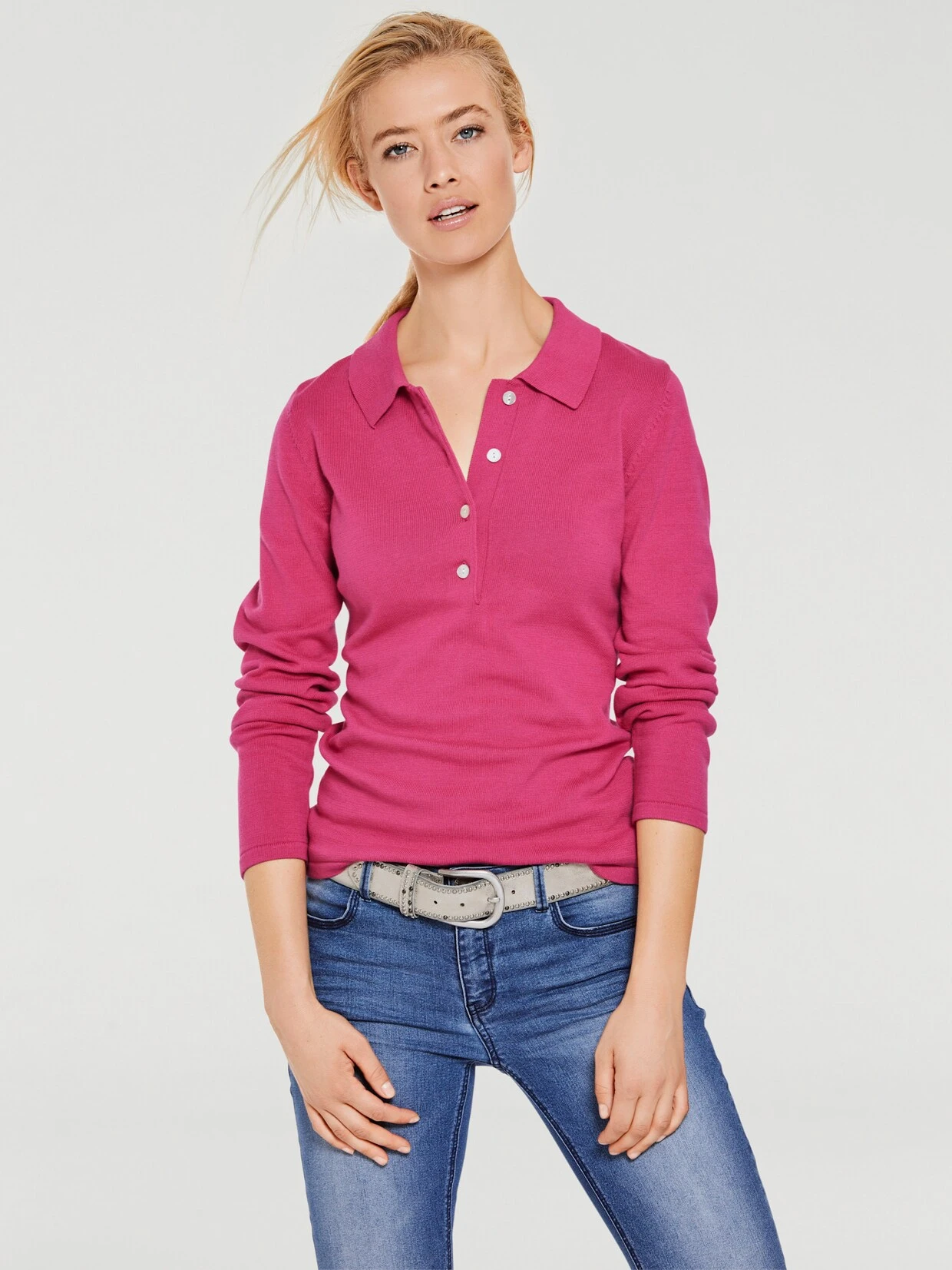 Polopullover Sportiver Modepartner im soften Feinstrick. Figurbetont, mit halber Knopfleiste und Langarm.