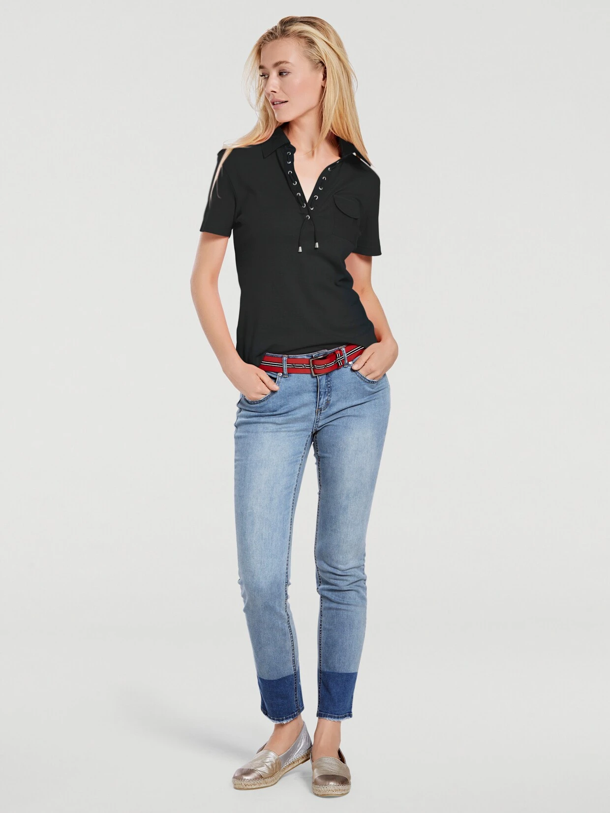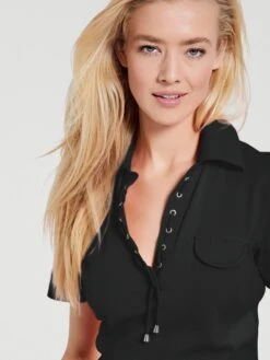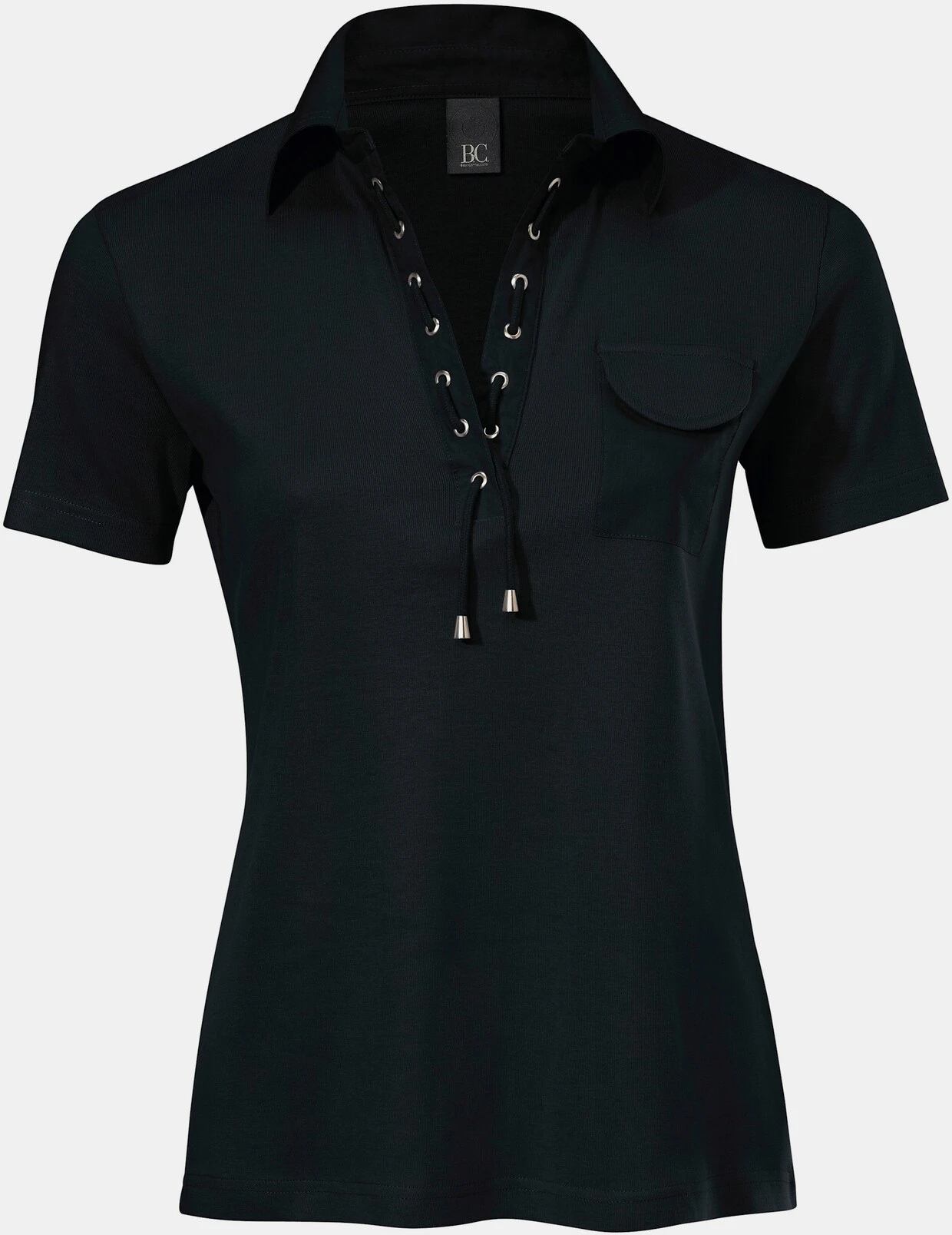 Poloshirt Klassischer Polo-Style, mit Schnürung. Figurbetonte Form. Feine Rippenware, soft und hautsympathisch.