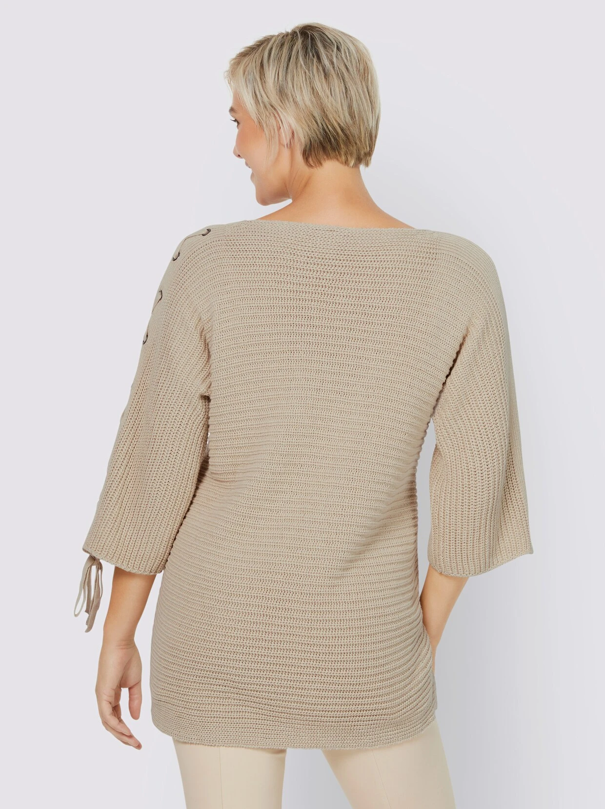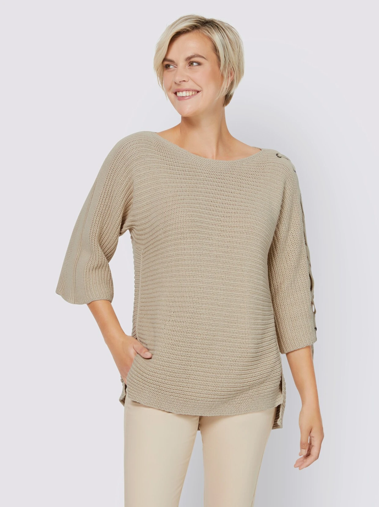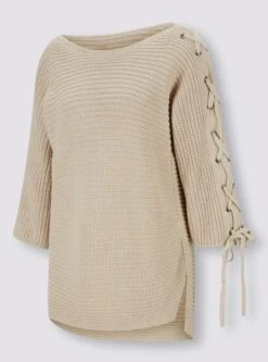 Pullover Modischer Allrounder aus weichem Feinstrick. Im Rückteil etwas länger. Leichter U-Boot Ausschnitt. Weiter 3/4-Arm mit modischer Schnürung. Schlitze im Vorderteil. Unterstützt die Initiative Cotton made in Africa.