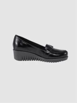 Pumps Keilpumps mit Riegel und Dornschließe. Aus glänzendem Kalb-Glattleder. Mit komfortabler Innenausstattung und flexibler Laufsohle. Futter: Textil. Innensohle: Leder. Absatzhöhe ca. 40 mm.