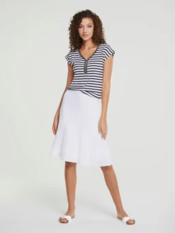 Rock Figurumspielend geschnitten, mit Gummizugbund. Freizeit- und alltagstauglich. Pflegeleichte Qualität.