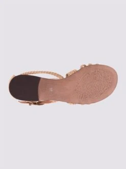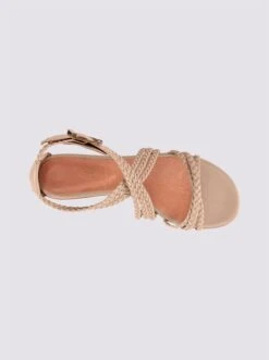 Sandalette Made in Portugal. Topaktuell mit feinen Flechtriemchen. Aus softem Kalb-Nappaleder und Feinsynthetik. Futter und Innensohle: Leder. Absatzhöhe ca. 10 mm.