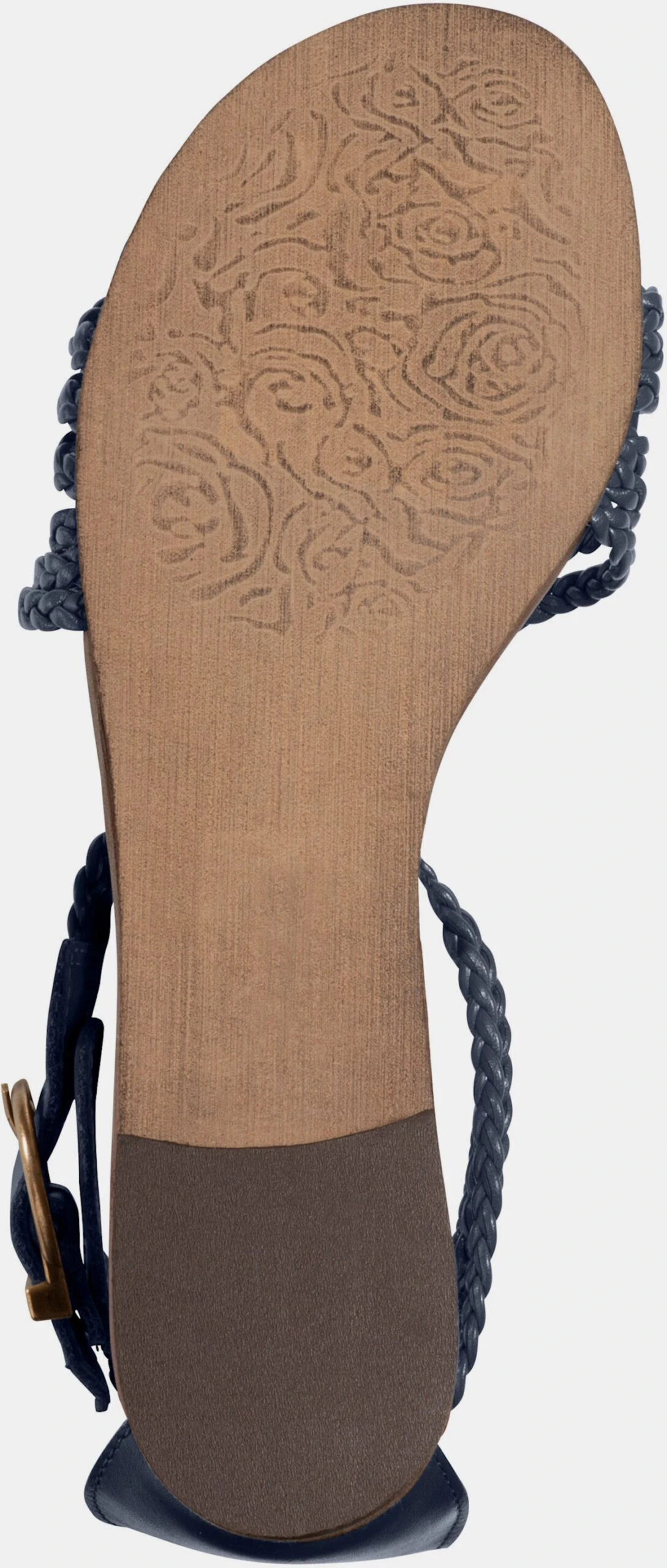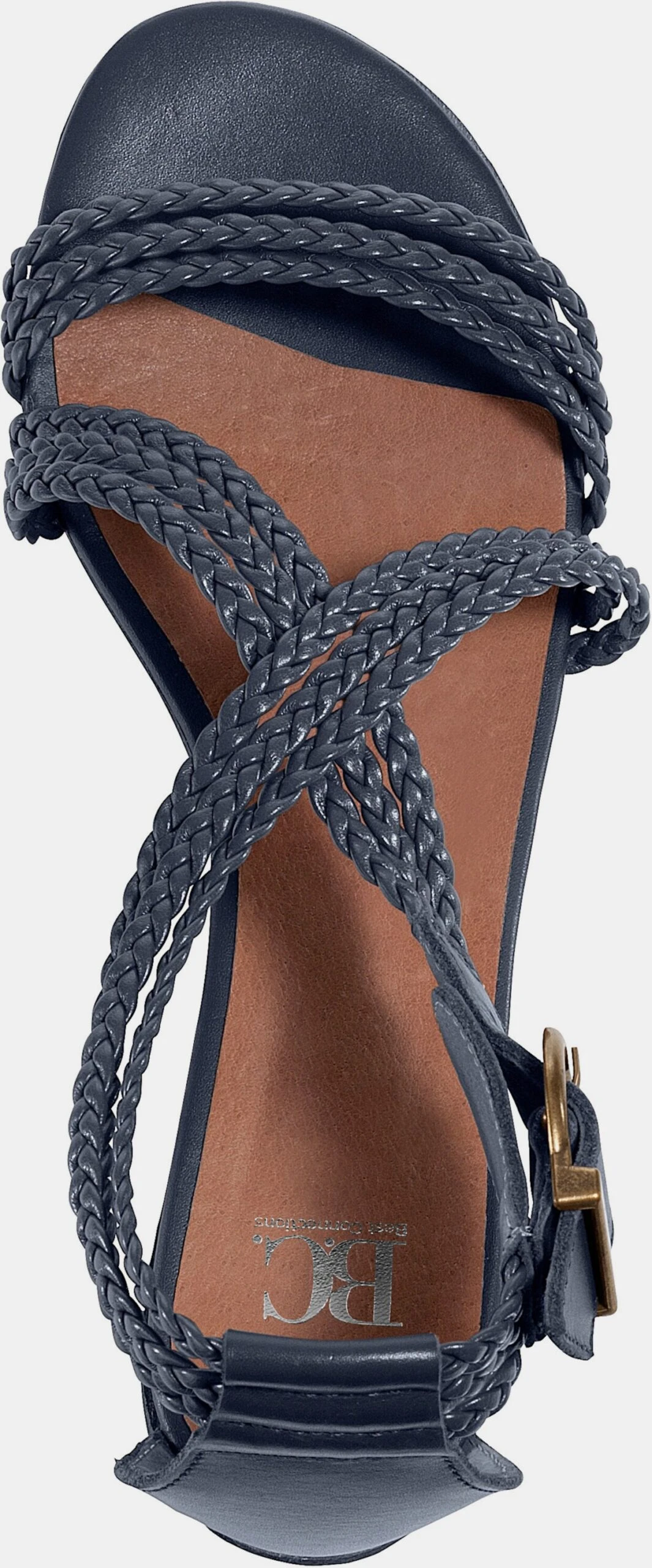 Sandalette Made in Portugal. Topaktuell mit feinen Flechtriemchen. Aus softem Kalb-Nappaleder und Feinsynthetik. Futter und Innensohle: Leder. Absatzhöhe ca. 10 mm.
