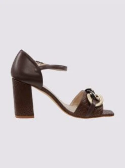 Sandalette Handmade in Spain. Edles Ziegen-Nappaleder, mit dekorativem Kettenelement. Weich gepolstert. Futter: Synthetik, Innensohle: Leder. Absatzhöhe ca. 70 mm.