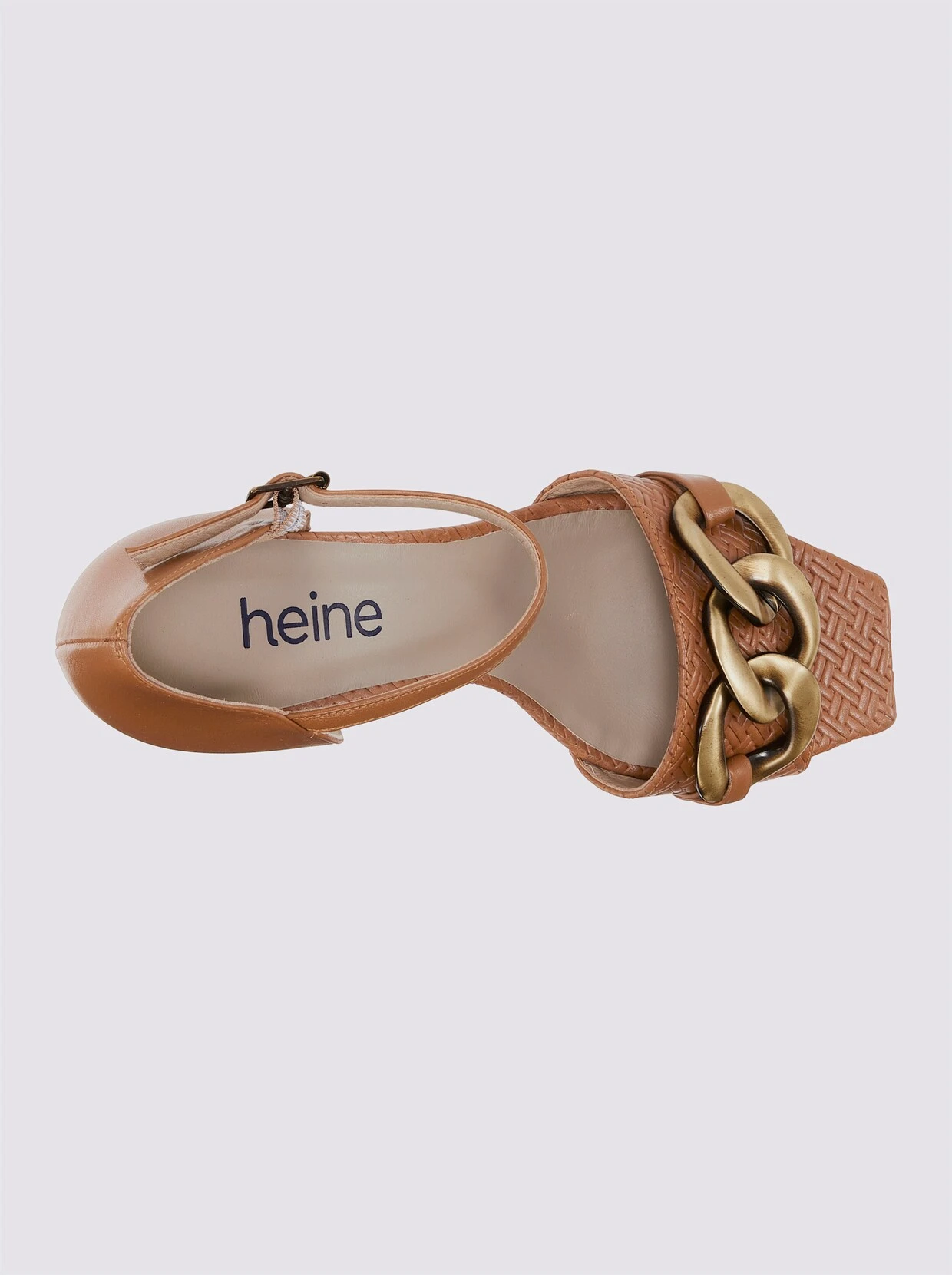 Sandalette Handmade in Spain. Edles Ziegen-Nappaleder, mit dekorativem Kettenelement. Weich gepolstert. Futter: Synthetik, Innensohle: Leder. Absatzhöhe ca. 70 mm.