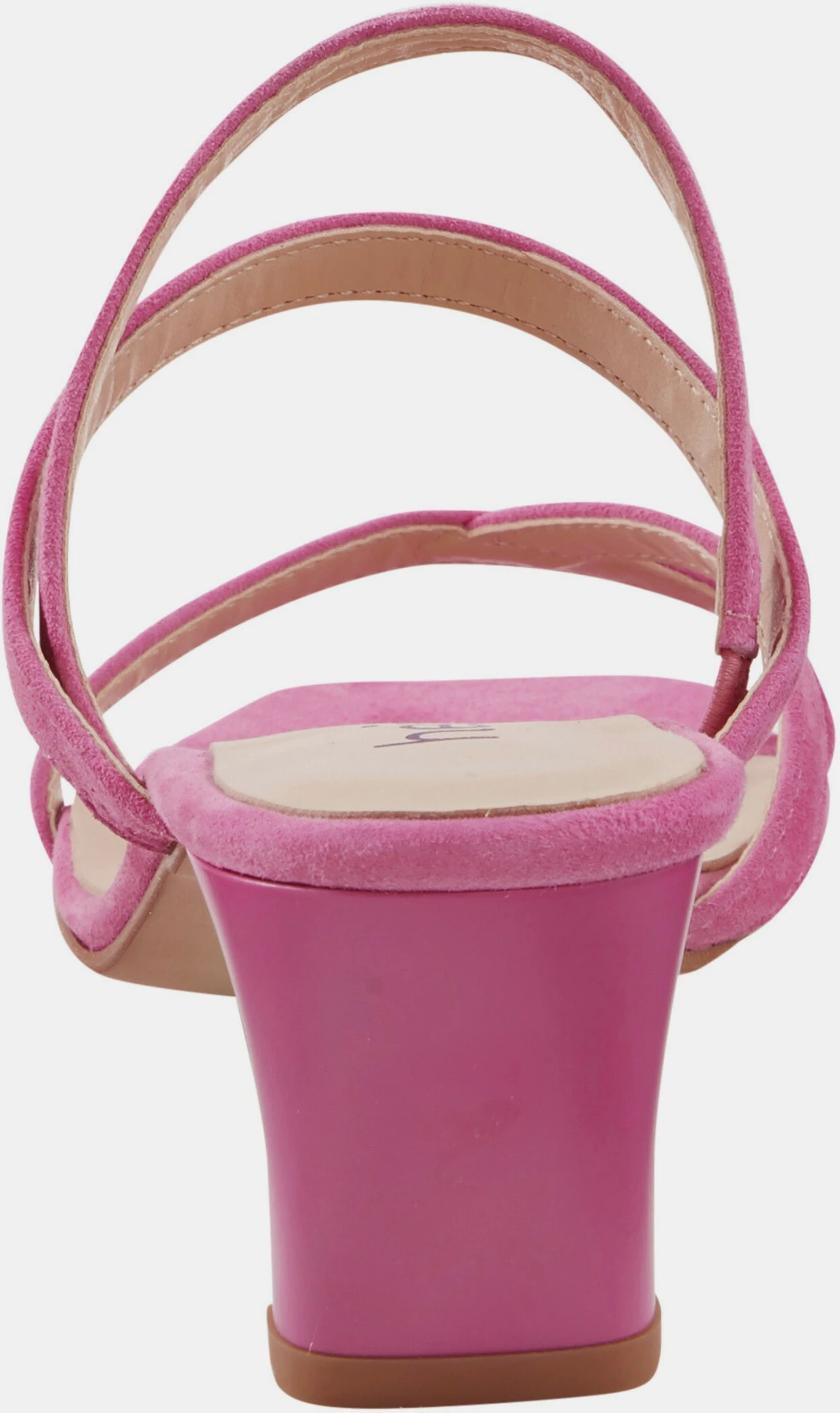Sandalette Mit schmalen Riemchen und Elastik-Einsätzen. Aus edlem Ziegen-Veloursleder. Futter: Synthetik, Innensohle Leder. Mit Blockabsatz, Höhe ca. 45 mm.