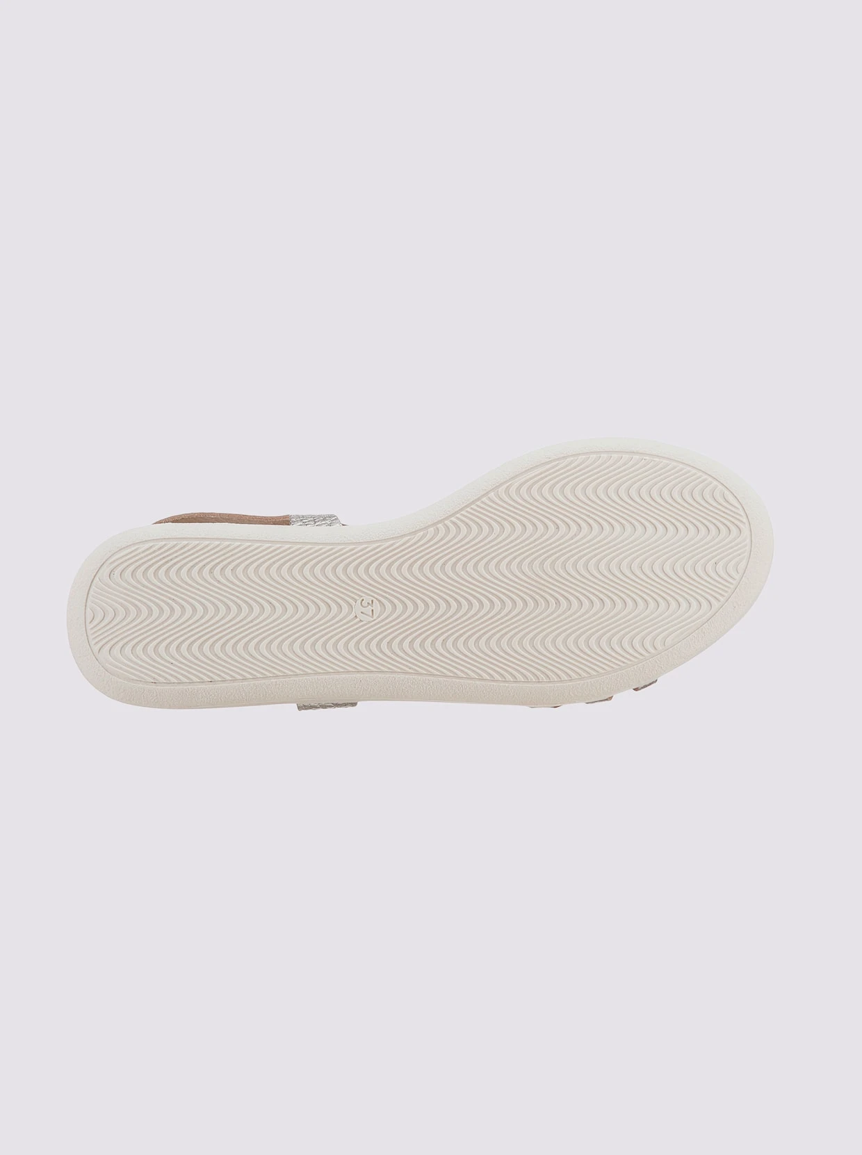 Sandalette Trendbegleiter aus weichem Rind-Glattleder im Metallic-Look. Mit Prägung. Futter und Innensohle: Textil. Kontrastfarbenes Plateau, Höhe ca. 30 mm. Fällt klein aus, bitte eine Nummer größer bestellen.