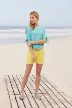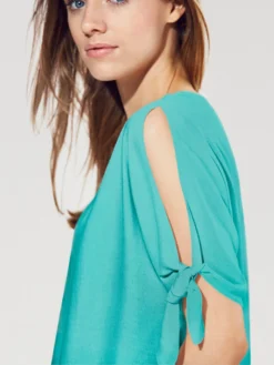 Schlupfbluse Im angesagten Look. Angenehm auf der Haut. Figurumspielende Form. Ärmel mit modischen Knotendetails.