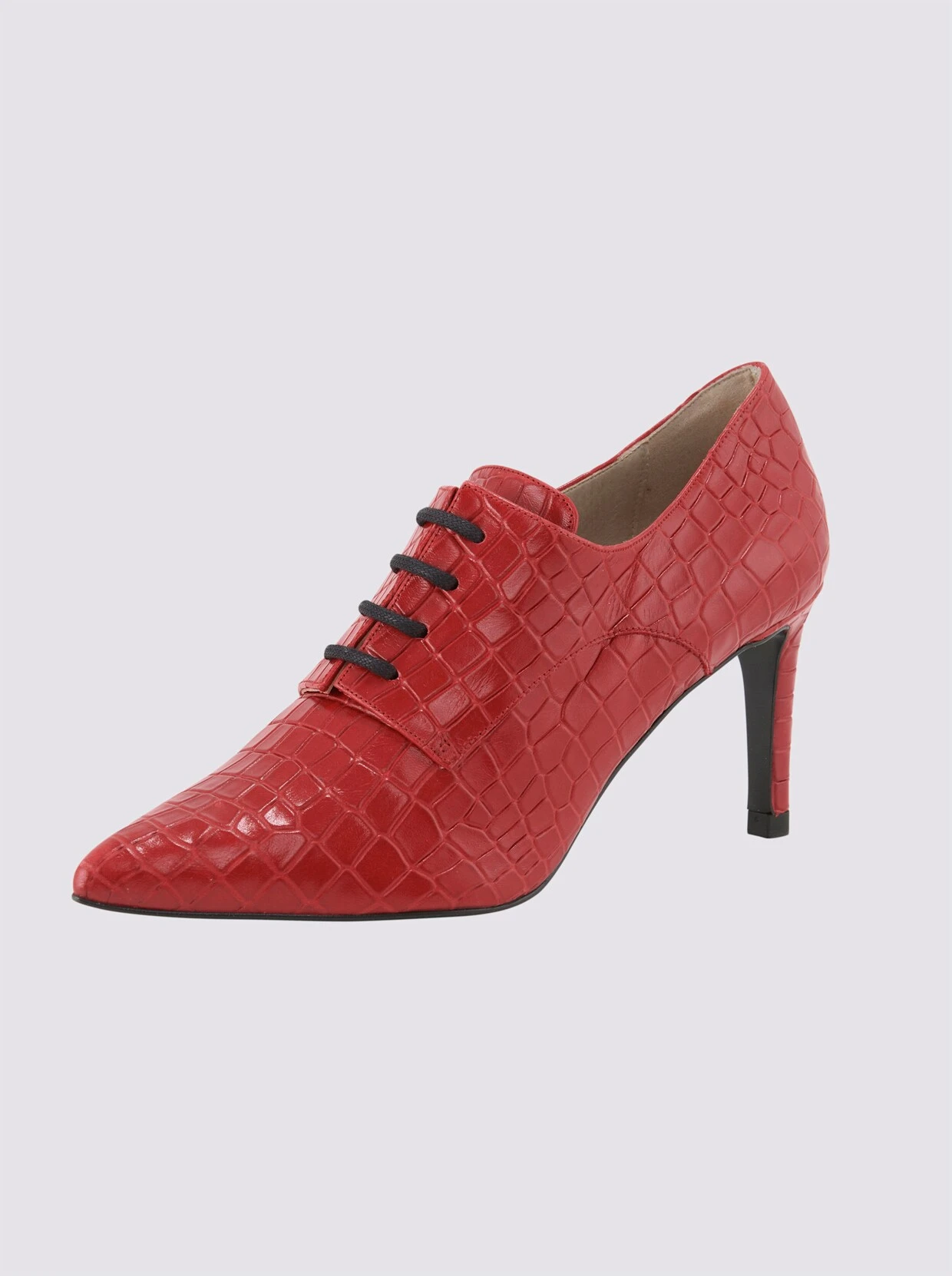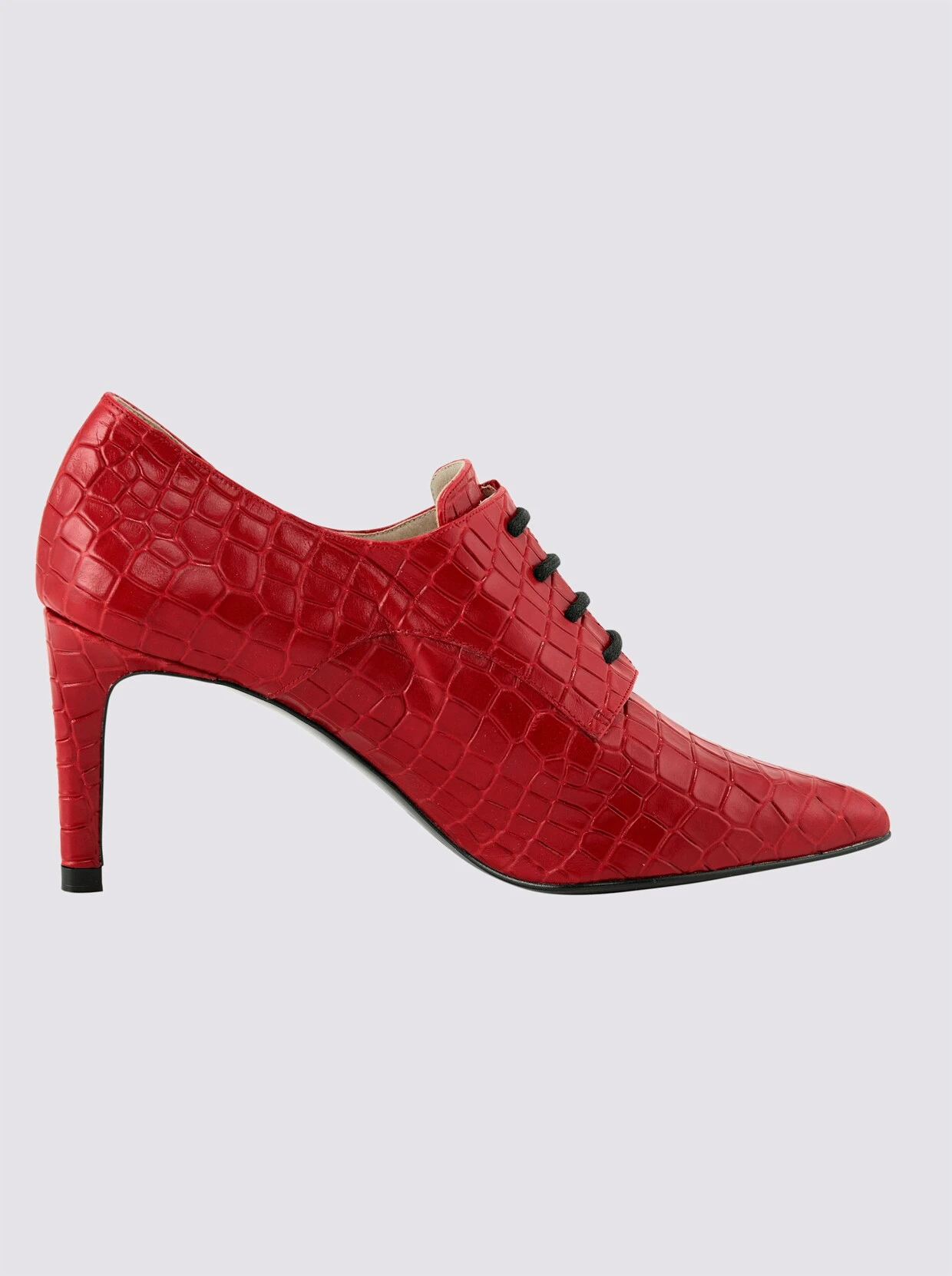 Schnürpumps Handmade in Spain. Edle spitze Form, aus geprägtem Rind-Glattleder in Kroko-Optik. Futter: Synthetik, Innensohle: Leder. Femininer Stilettoabsatz, Höhe ca. 65 mm.