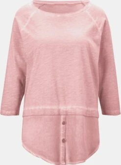 Shirt Lässig im 2-in-1-Look, mit angesetztem Blusenteil. Moderne Oil-Dyed-Ware. Figurumspielend, mit Rundhalsausschnitt und 3/4-Arm.