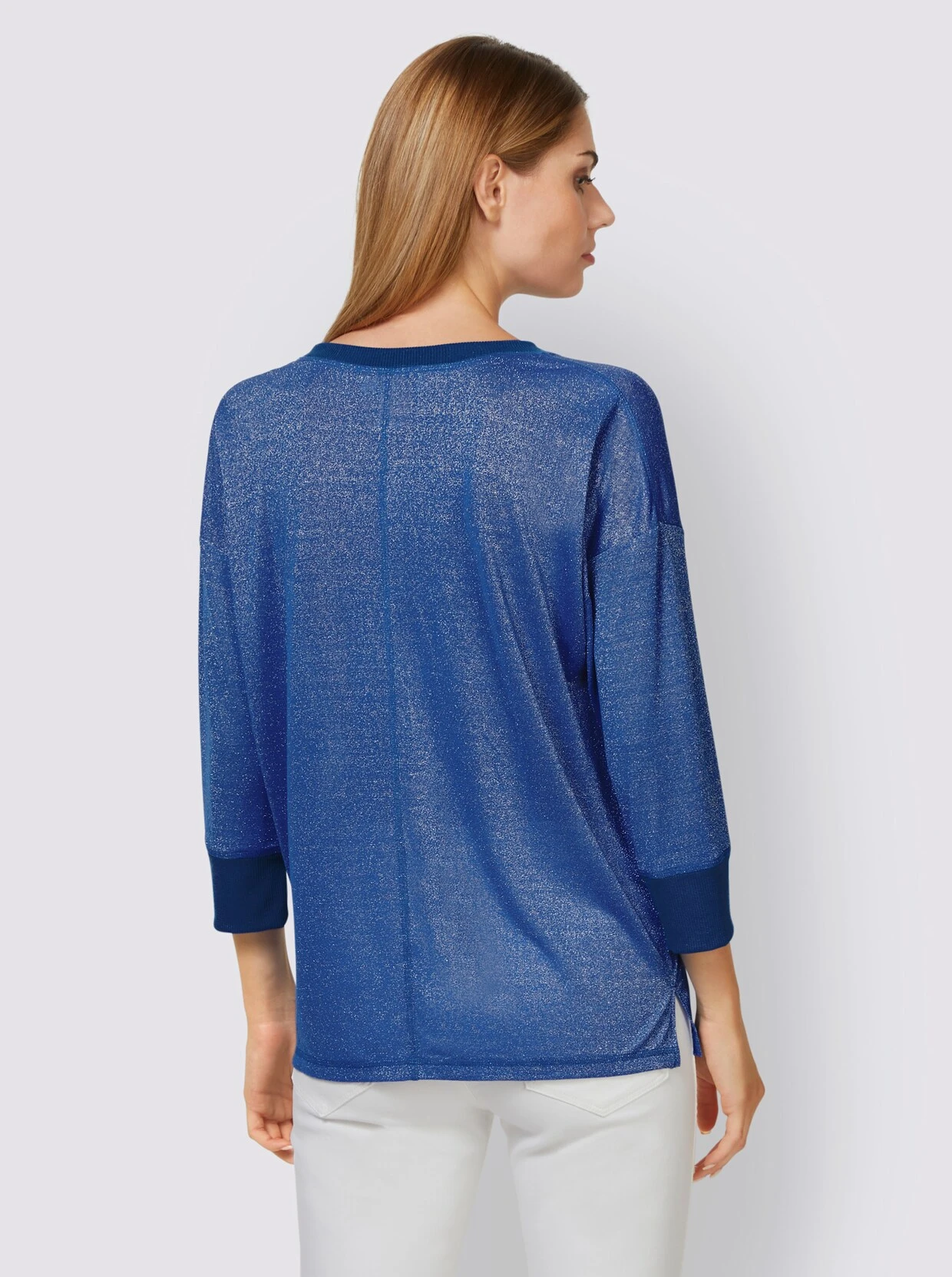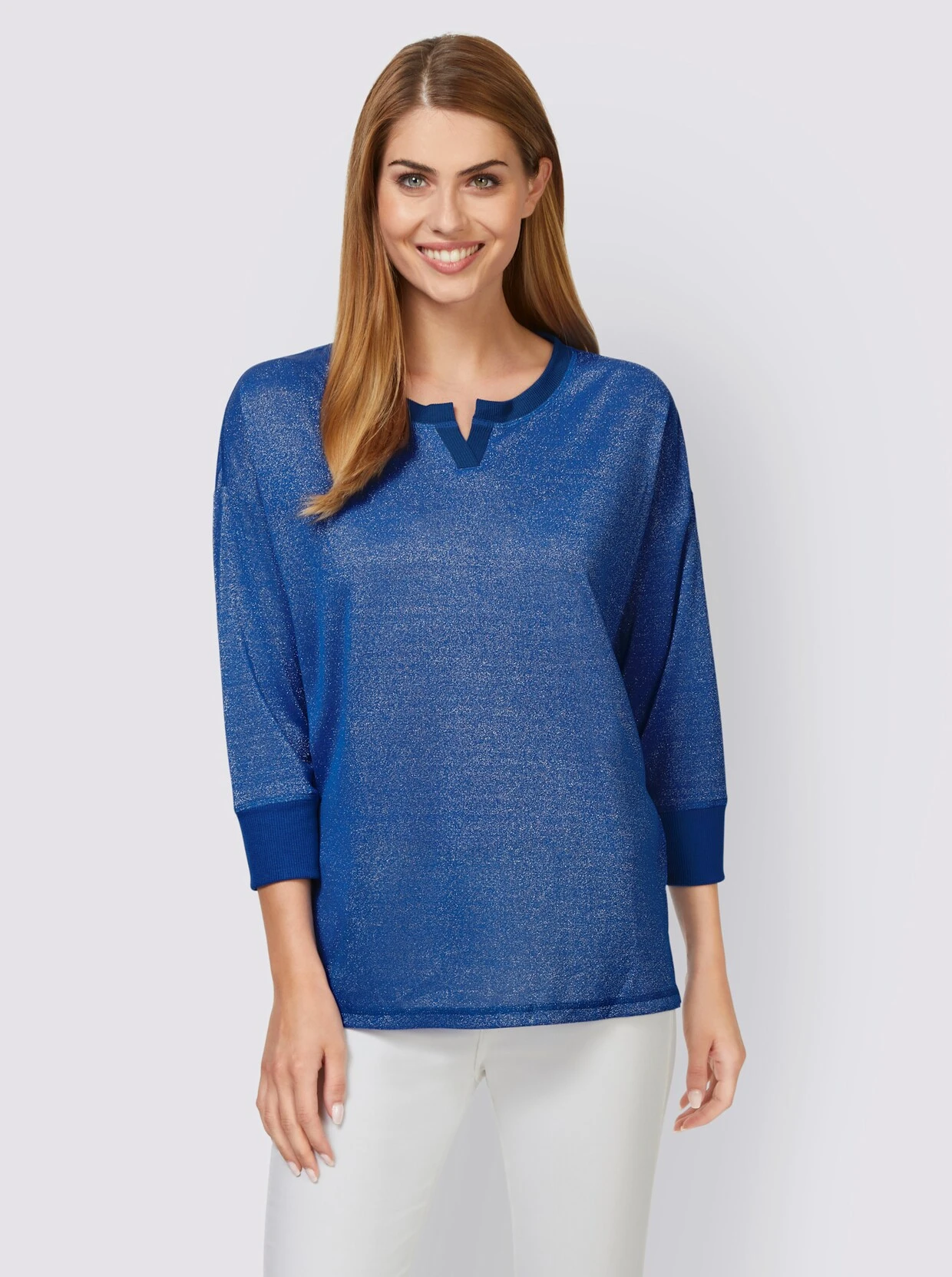 Shirt Lust auf Komplimente? Rundhals-Style mit glitzerndem Effektgarn, offenem V und Seitenschlitzen. Modische 3/4-Ärmel mit Bündchen.