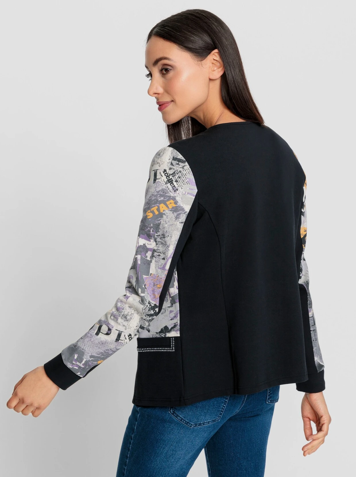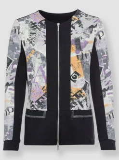 Heine Shirtjacke In Schwarz-hellgrau-bedruckt