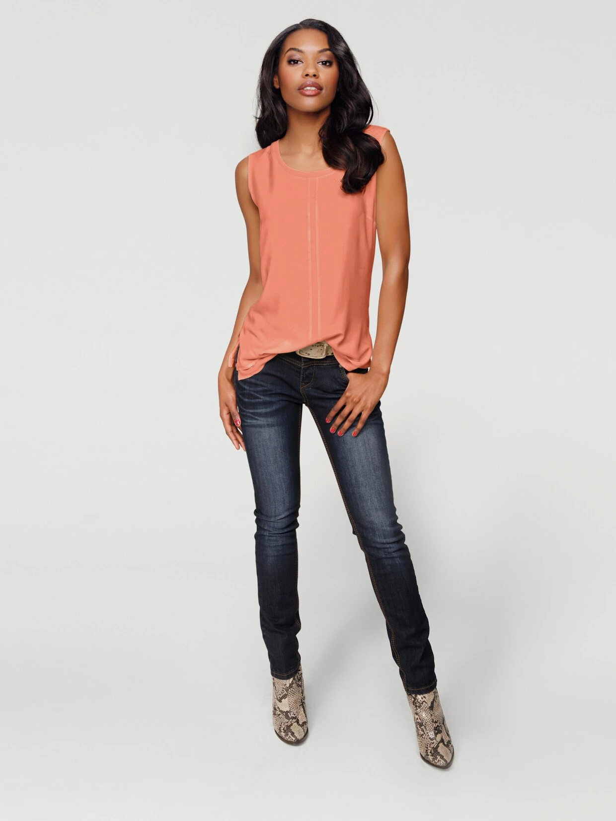Shirttop Im effektvollen Lagen-Look: oben leichter Jersey, darunter fließende Webware. Figurumspielend.