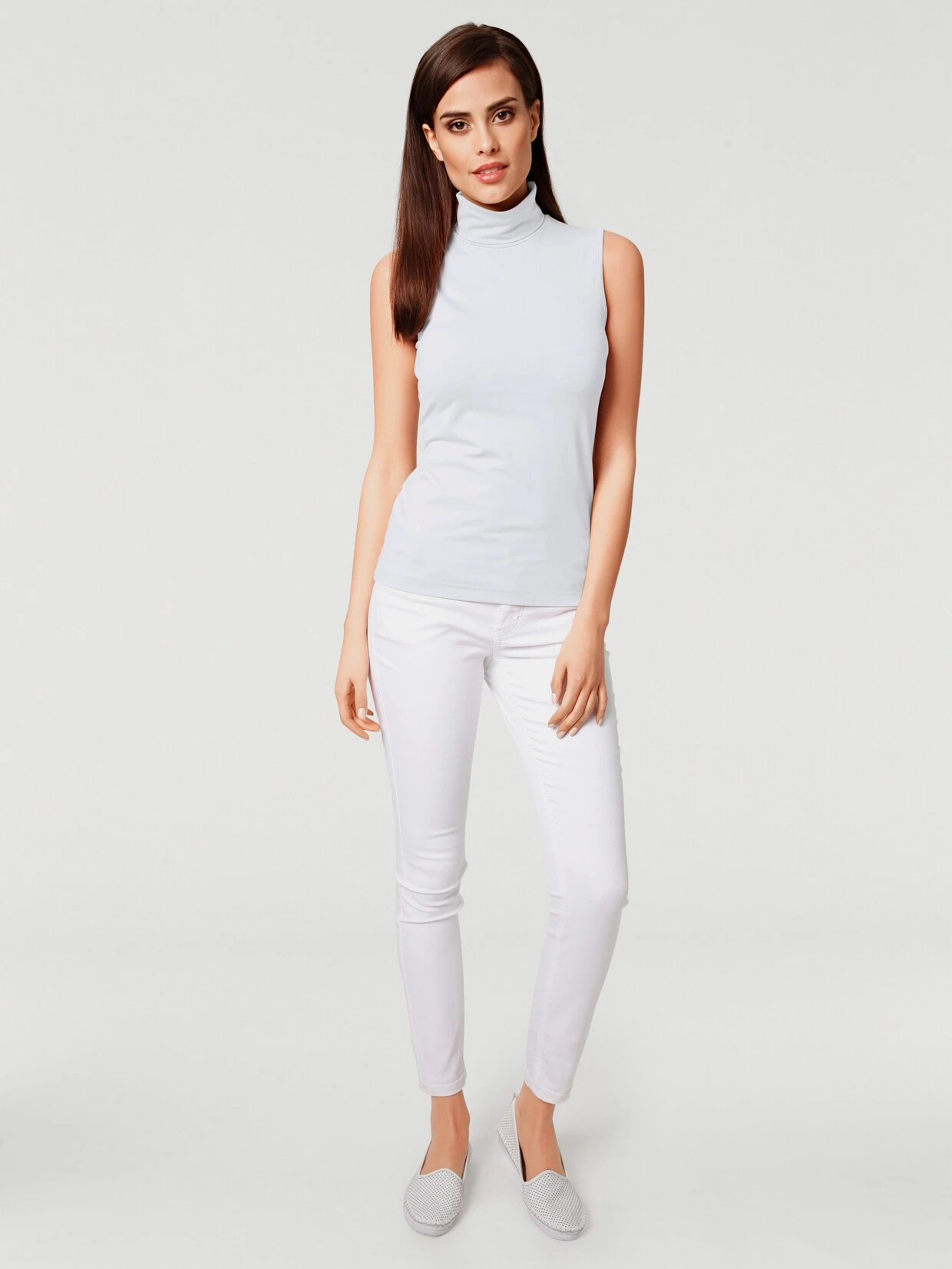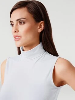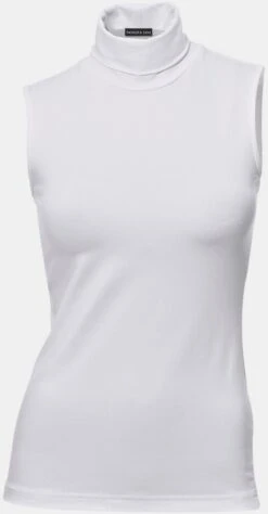 Shirttop Solo oder unterm Blazer der perfekte Modepartner. In angenehm stretchiger Tactel-Qualität, farbbrillant und mit leichtem Glanz. Figurbetonte, ärmellose Variante mit halsnahem Rollkragen.