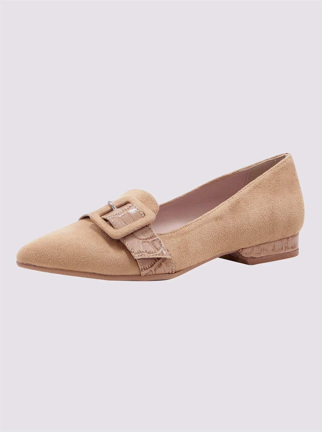 Slipper In eleganter Veloursleder-Optik aus hochwertigem Synthetik mit Band im Animal-Look. Futter: Synthetik. Innensohle: Leder. Blockabsatz, Höhe ca. 20 mm.