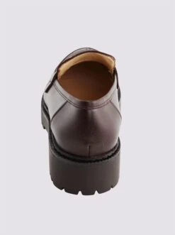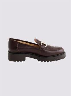 Slipper Made in Spain. Aus hochwertigem Kalb-Glattleder, mit angesagter Plateau-Sohle, Ziernähten und dekorativem Metallelement auf dem Blatt. Futter: Synthetik, Innensohle: Leder. Mit Blockabsatz, Höhe ca. 30 mm.