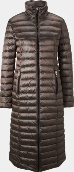 Steppmantel In aktueller Longform. Edel schimmernde Qualität. Figurbetonte Form. Zwei-Wege-Reißverschluss. Mit Eingrifftaschen.