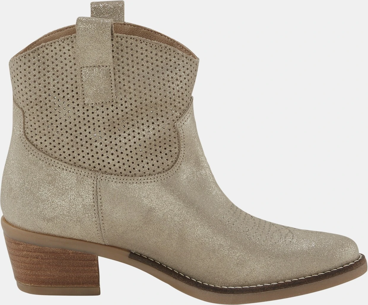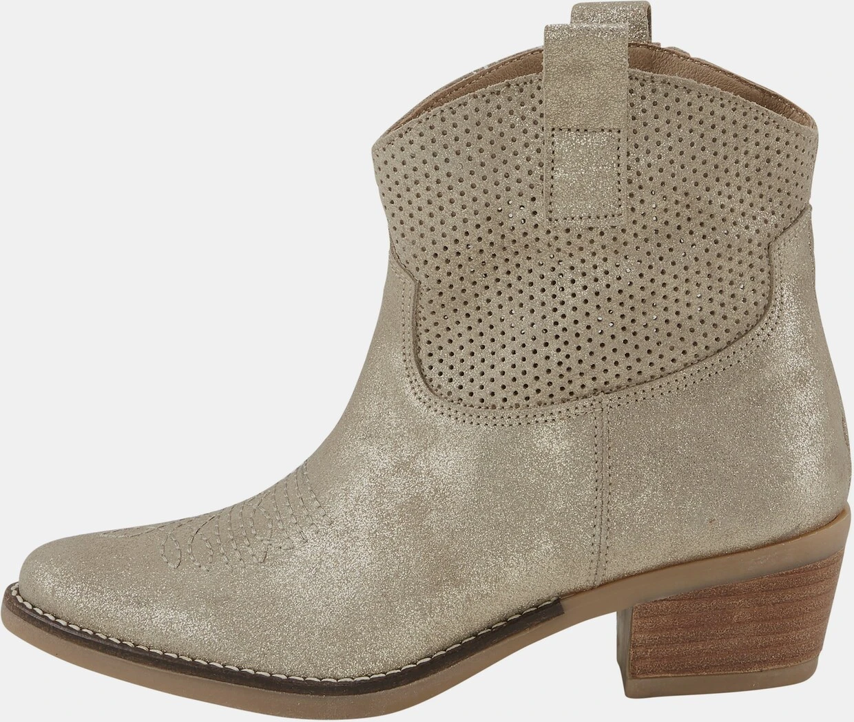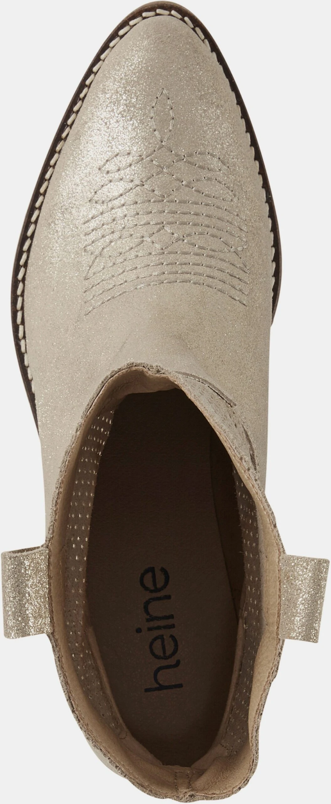 Stiefelette Für den sportlich-jungen Auftritt. Aus hochwertigem Rind-Nappaleder. Topmodern mit Metallic-Effekt und Zier-Stitching. Futter und Innensohle: Textil. Mit Cowboyabsatz, Höhe ca. 50 mm.