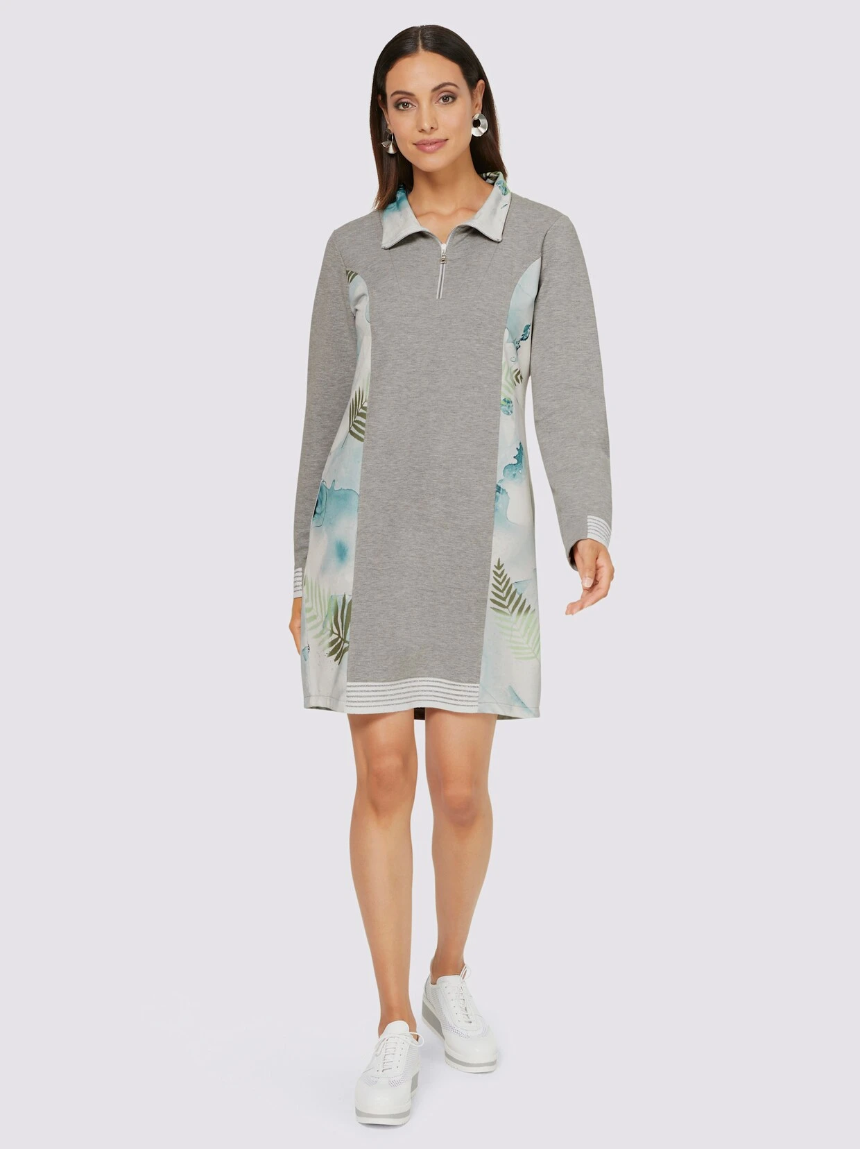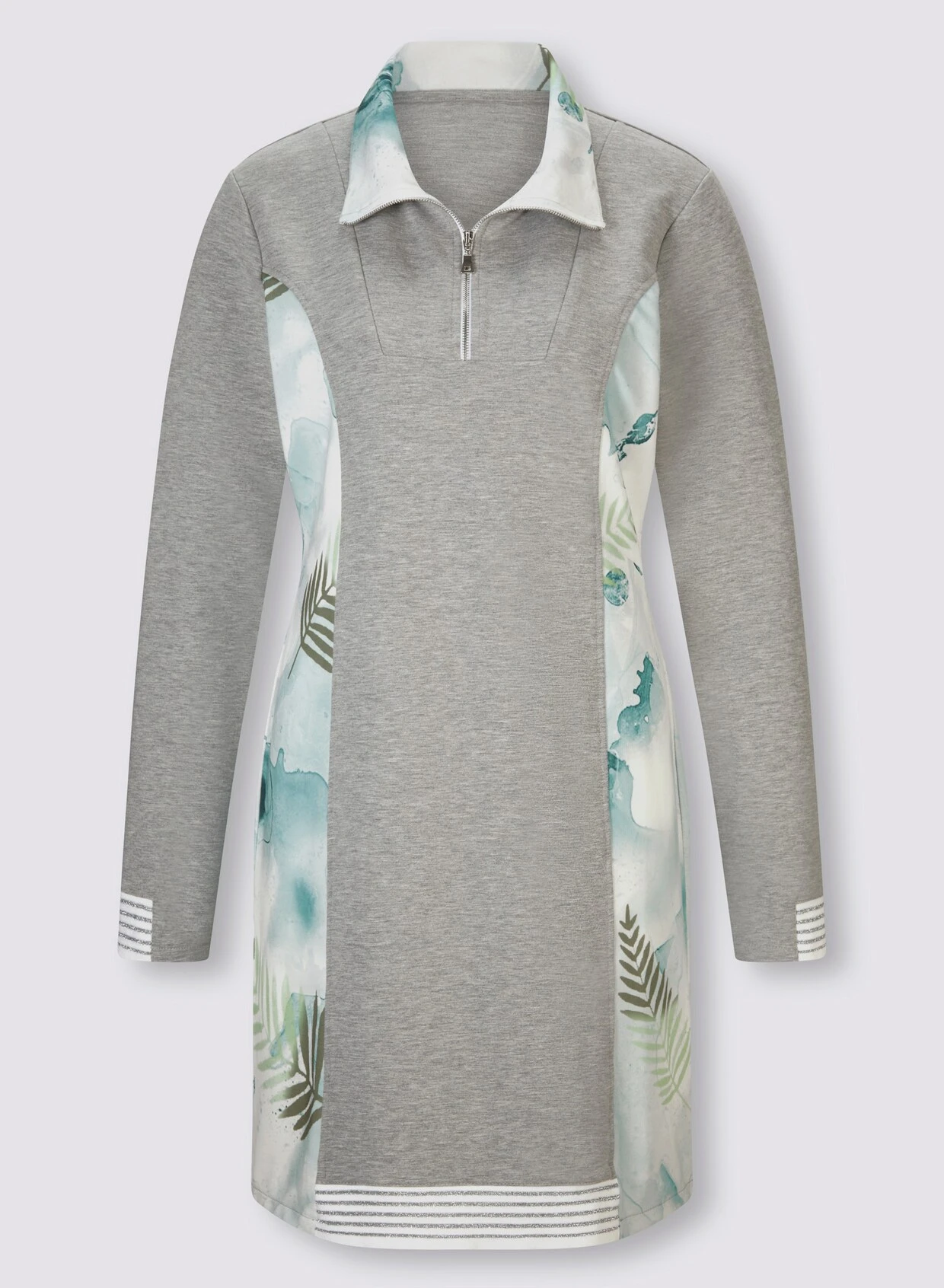 Sweatkleid Angesagtes Detail: der lässige Troyerkragen mit Zipper. Effektvolle Druck-Einsätze seitlich und im Innenkragen. Teilbündchen mit Effektgarn an Langarm und Saum. Bequeme und geschmeidige Ware.