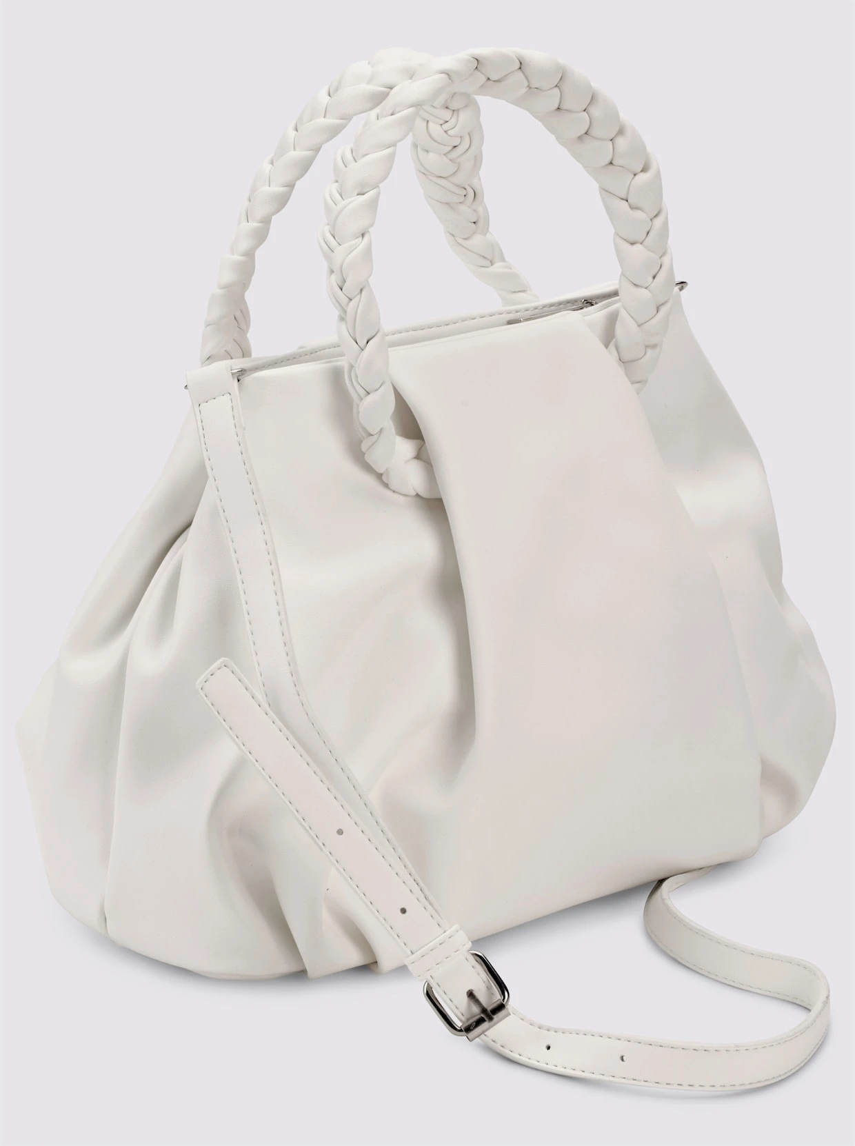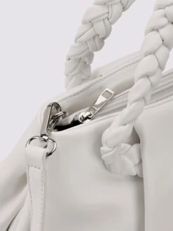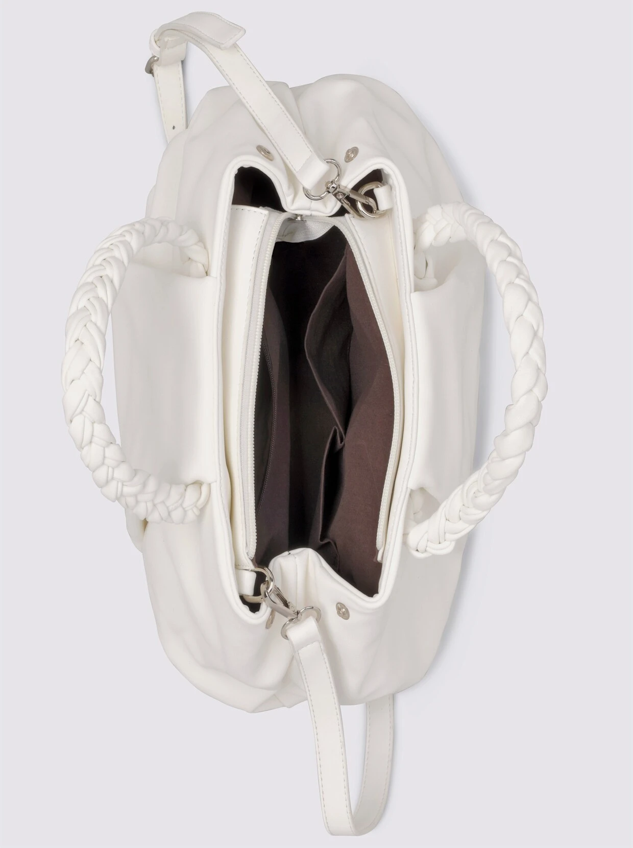 Tasche Trendstarker Blickfang: die geflochtenen Henkel. Hochwertiges Synthetik. Mit Reißverschluss und seitlichen Druckknöpfen zum Vergrößern und Verkleinern. Innen mit 2 Steckfächern und 1 Reißverschlussfach. Ca. 41/25/15 cm.