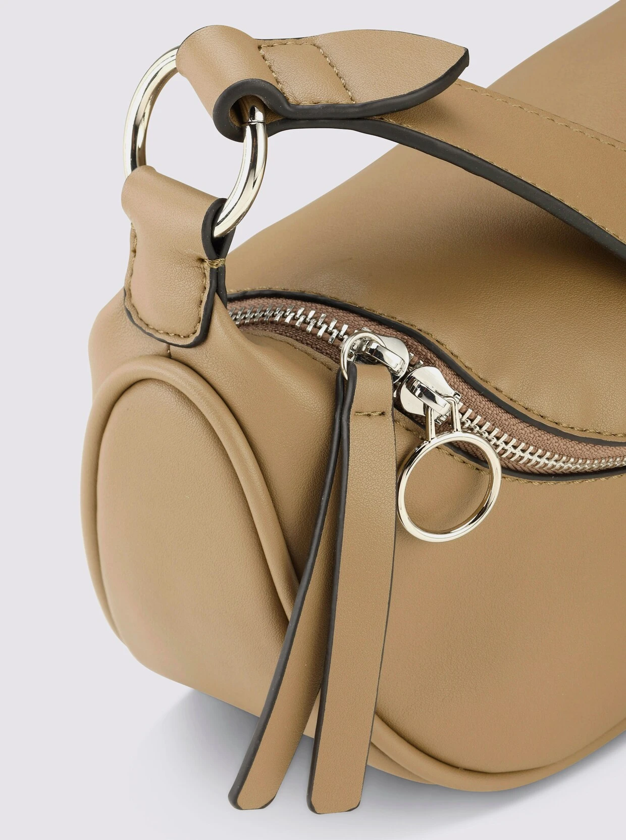 Tasche In moderner Form. Kombistarkes Accessoire aus weichem Lederimitat. Mit breitem Tragehenkel und längenverstellbarem Trageriemen. Ideal zum Crossover tragen. Dekorativer, halbmondförmiger Reißverschluss. Innen mit Reißverschlussfach. Ca. 29/19/10 cm.