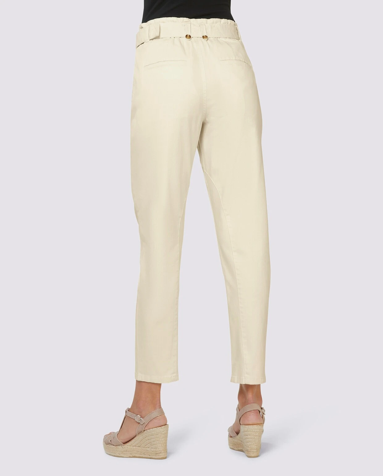 Twill-Hose Lässiger Boyfriend-Style in Paperbag-Optik mit Stretchanteil. Eingrifftaschen mit Knopf. Hinten mit Dehnbund und Gesäßtaschen. Comfort fit, erhöhte Leibhöhe. Fußweite ca. 36 cm. Unterstützt die Initiative Cotton made in Africa. Inklusive passendem Stoffgürtel.