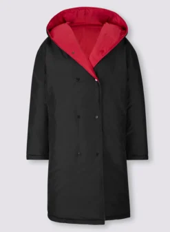 Wende-Mantel Voll im Trend! Herrlich warmer Begleiter mit modischer Steppung und Kapuze. Elegant verdeckte 2-reihige Druckknopfleiste. Mit Eingrifftaschen. Langarm.