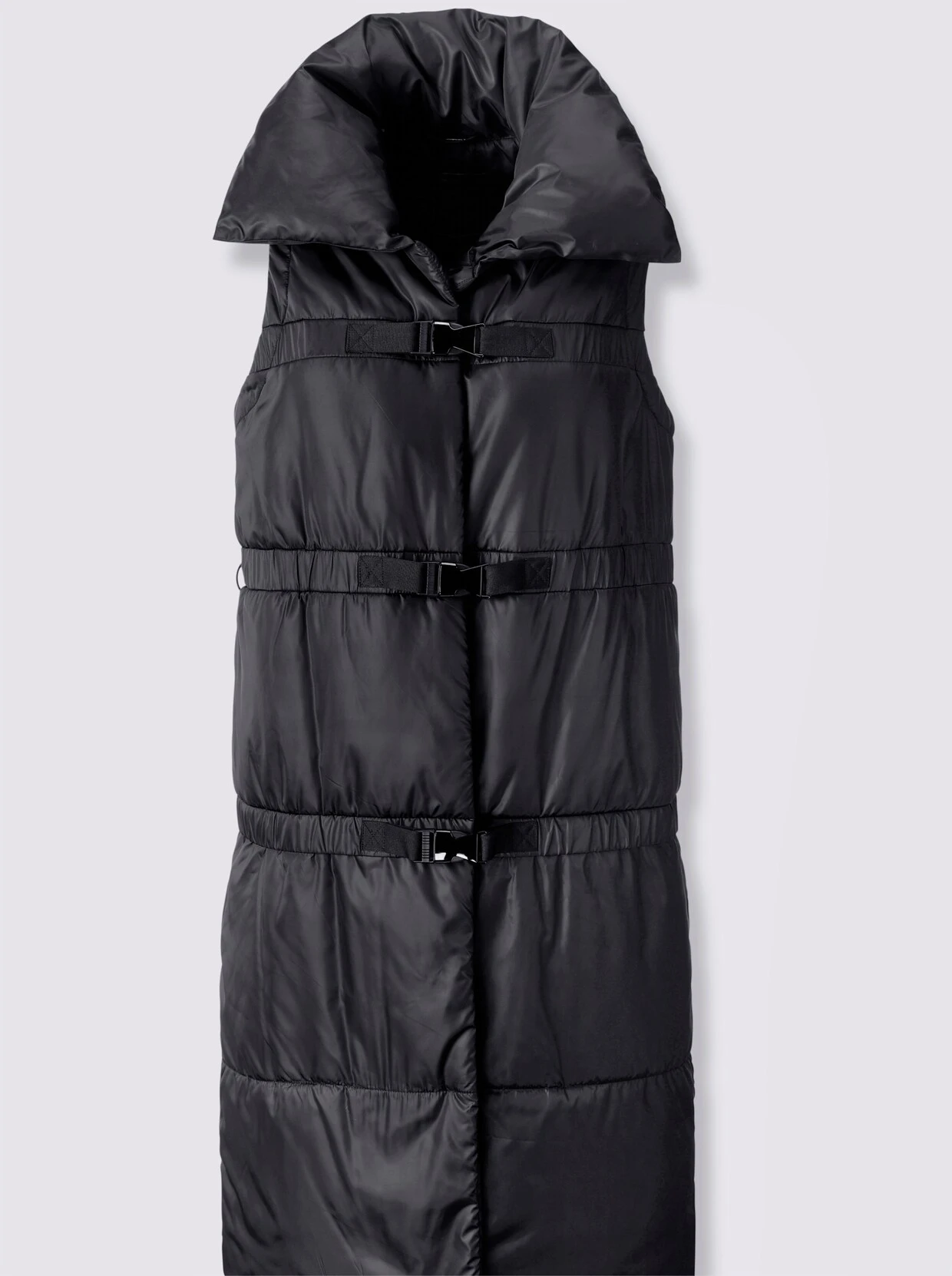 Weste Mal kurz, mal lang: Einfach nach Belieben das untere Teil per Reißverschluss abtrennen, dann wird die modische Longweste zur trendigen Kurzform. Angenehm wärmend, mit auffälligem Stehkragen, großen Schnallen und seitlichen Nahttaschen.