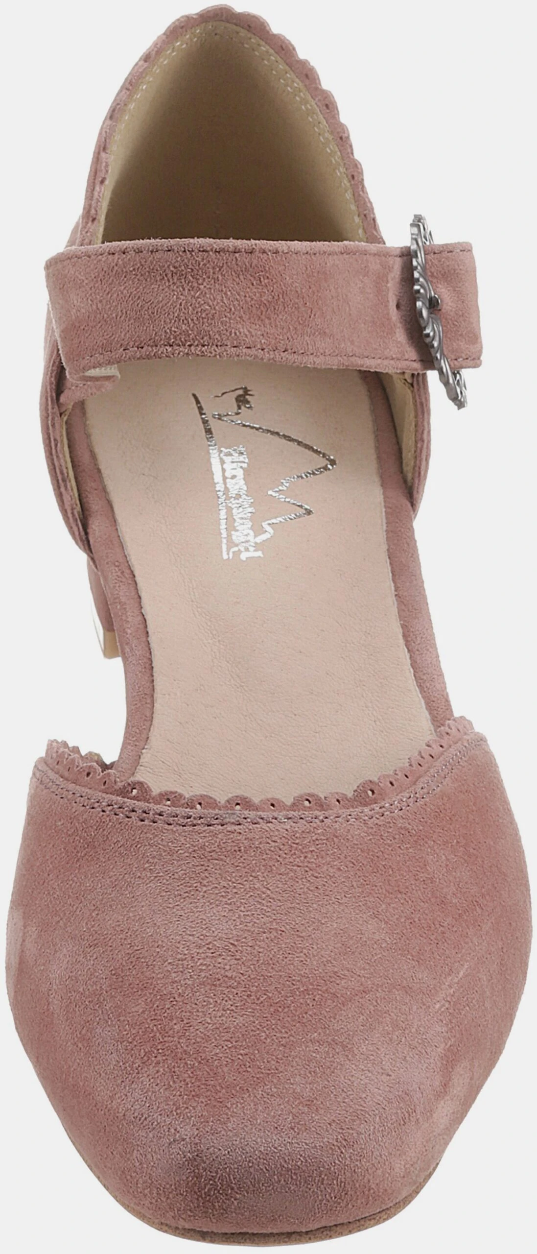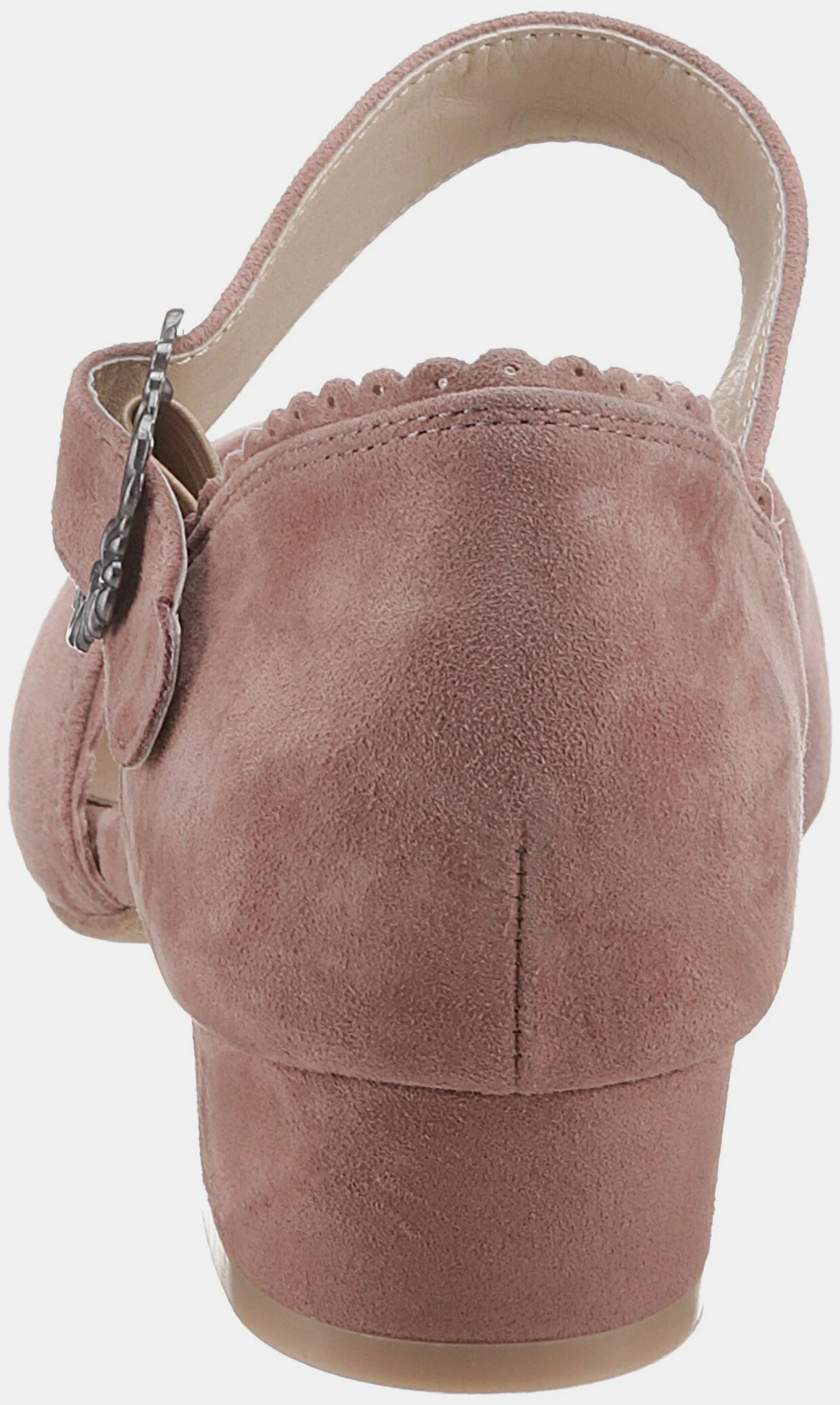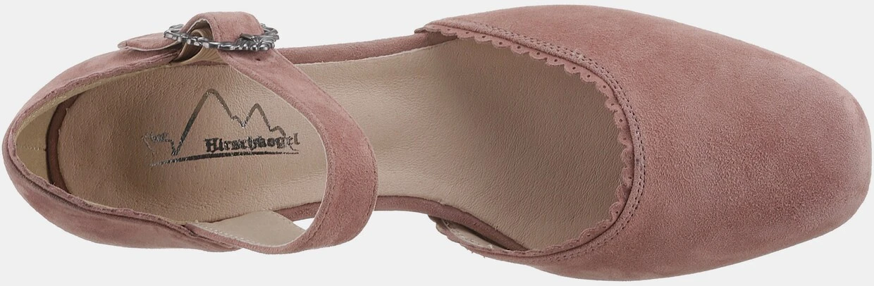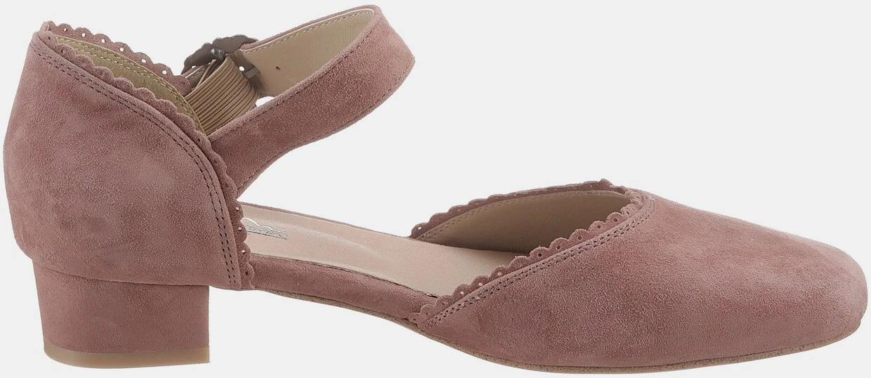 Mit Riemchen und dekorativer Metallschnalle, Weiches Ziegenveloursleder, Lederdecksohle, Modischer Trachtenschuh in Pastellfarben, Überzogener Blockabsatz: ca. 3 cm