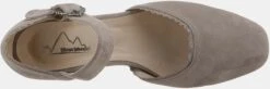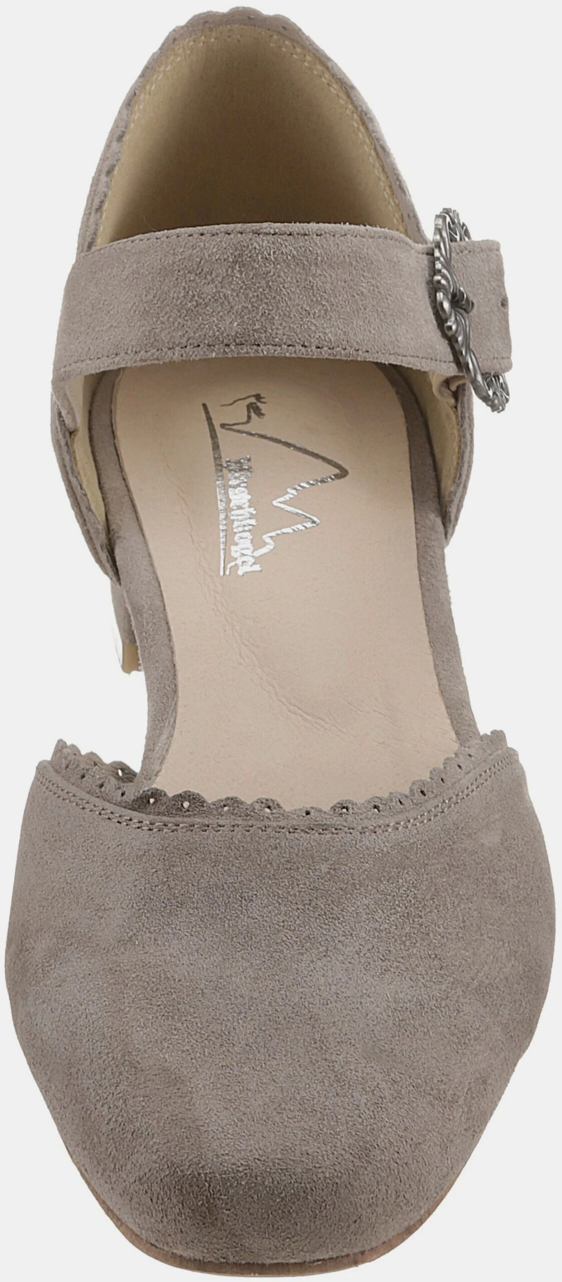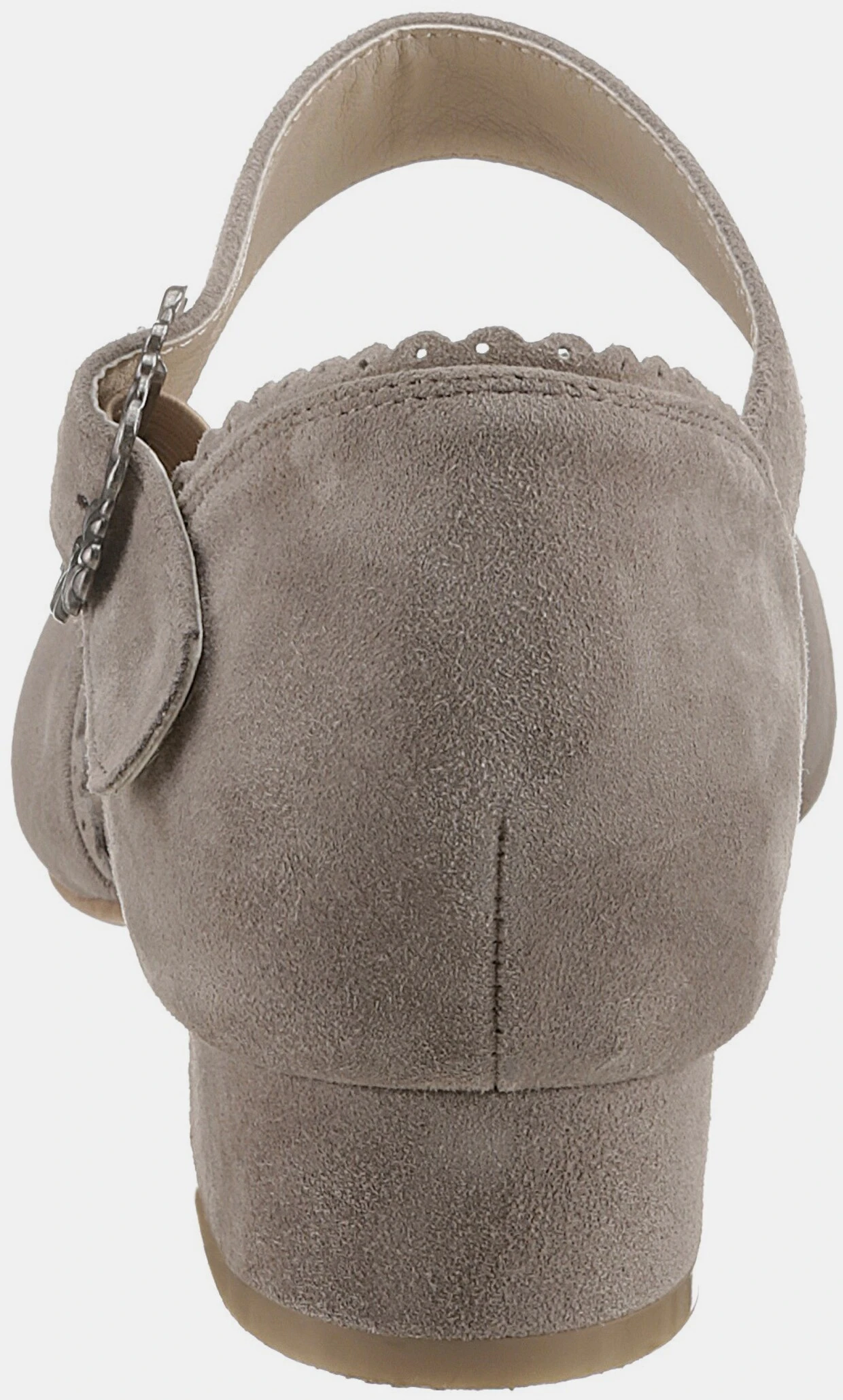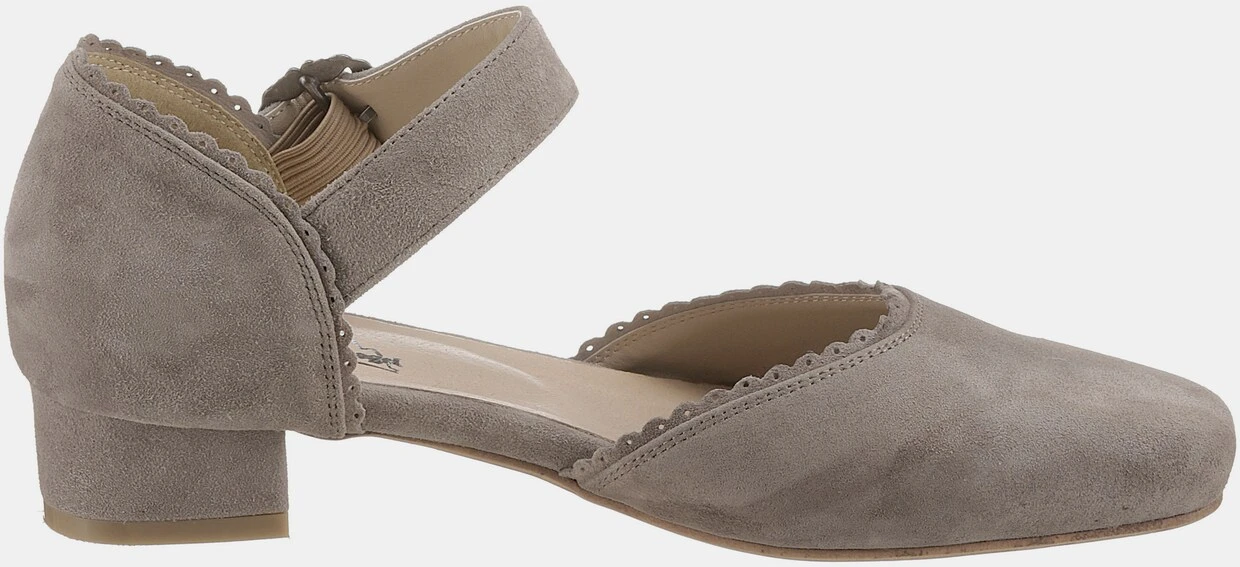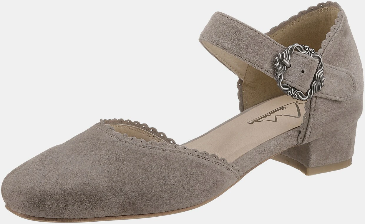 Mit Riemchen und dekorativer Metallschnalle, Weiches Ziegenveloursleder, Lederdecksohle, Modischer Trachtenschuh in Pastellfarben, Überzogener Blockabsatz: ca. 3 cm