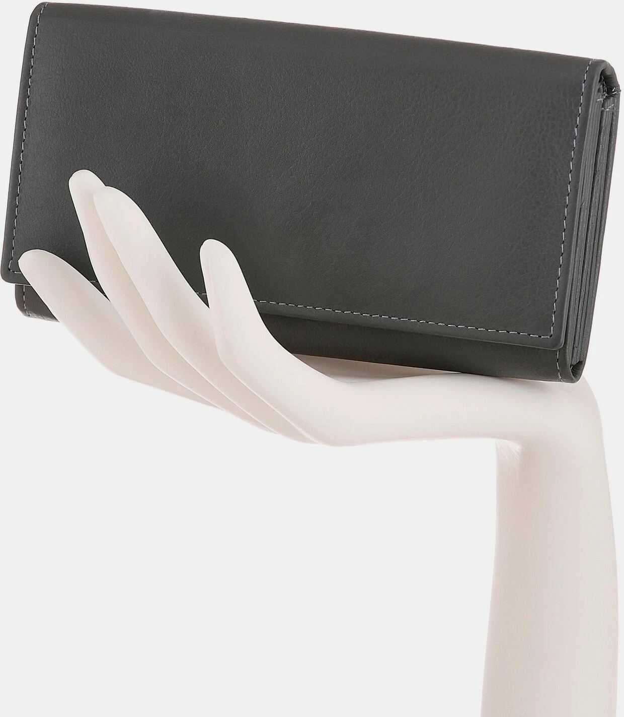J.Jayz Geldbörse aus weichem Leder. Hauptffach mit Druckknopfverschluss. 8 Kartenfächer. 1 Sichtfach. 4 Scheinfächer. Reißverschluss-Innenfach. Münzfach mit Druckknopfverschluss. Gr. ca. B/H/T: 17,5/9,5/3 cm.