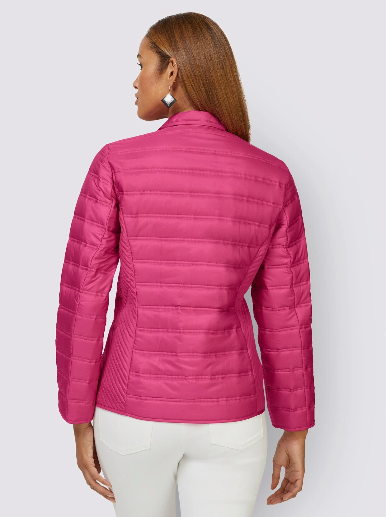 Diese leichte Jacke ergänzt mit Ihrem sportiven Steppmuster-Mix auch glamouröse Looks perfekt. Mit modischem Stehkragen, langen Ärmeln und Reißverschluss mit effektvoller Zickzack-Steppung. Die formgebenden Nähte bringen sie schön auf Figur und sorgen für die tolle Passform. Mit zwei praktischen, schräg eingesetzten Reißverschluss-Taschen und leichter Wattierung.