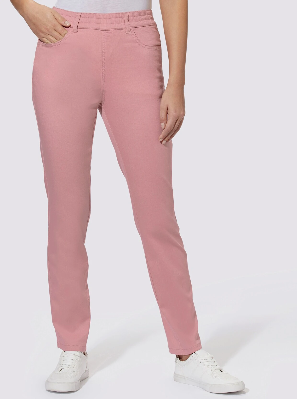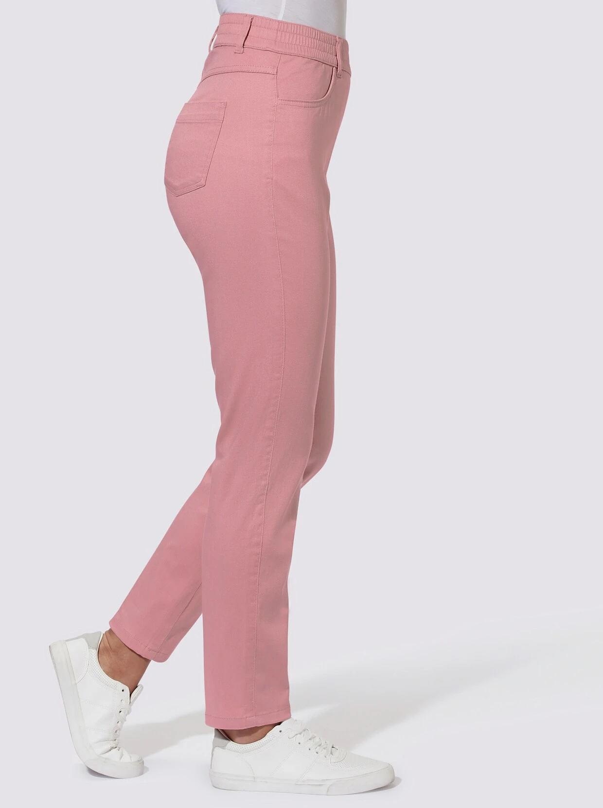 Bequem und in topmodischer Knöchellänge zeigt sich die Jeans mit Rundum-Dehnbund und Gürtelschlaufen. Praktisch: die beiden seitlichen Taschen und die 2 Gesäßtaschen. Fußweite ca. 32 cm. Ohne Gürtel.