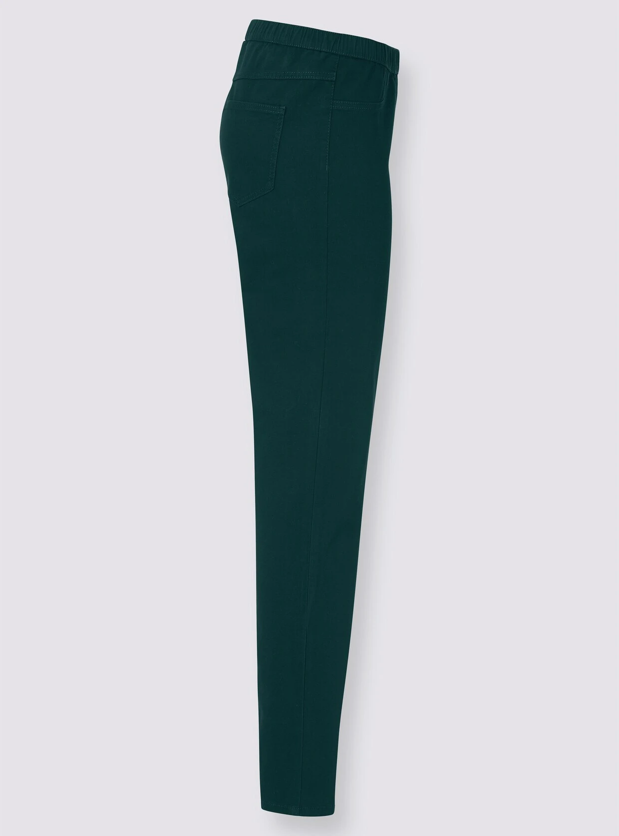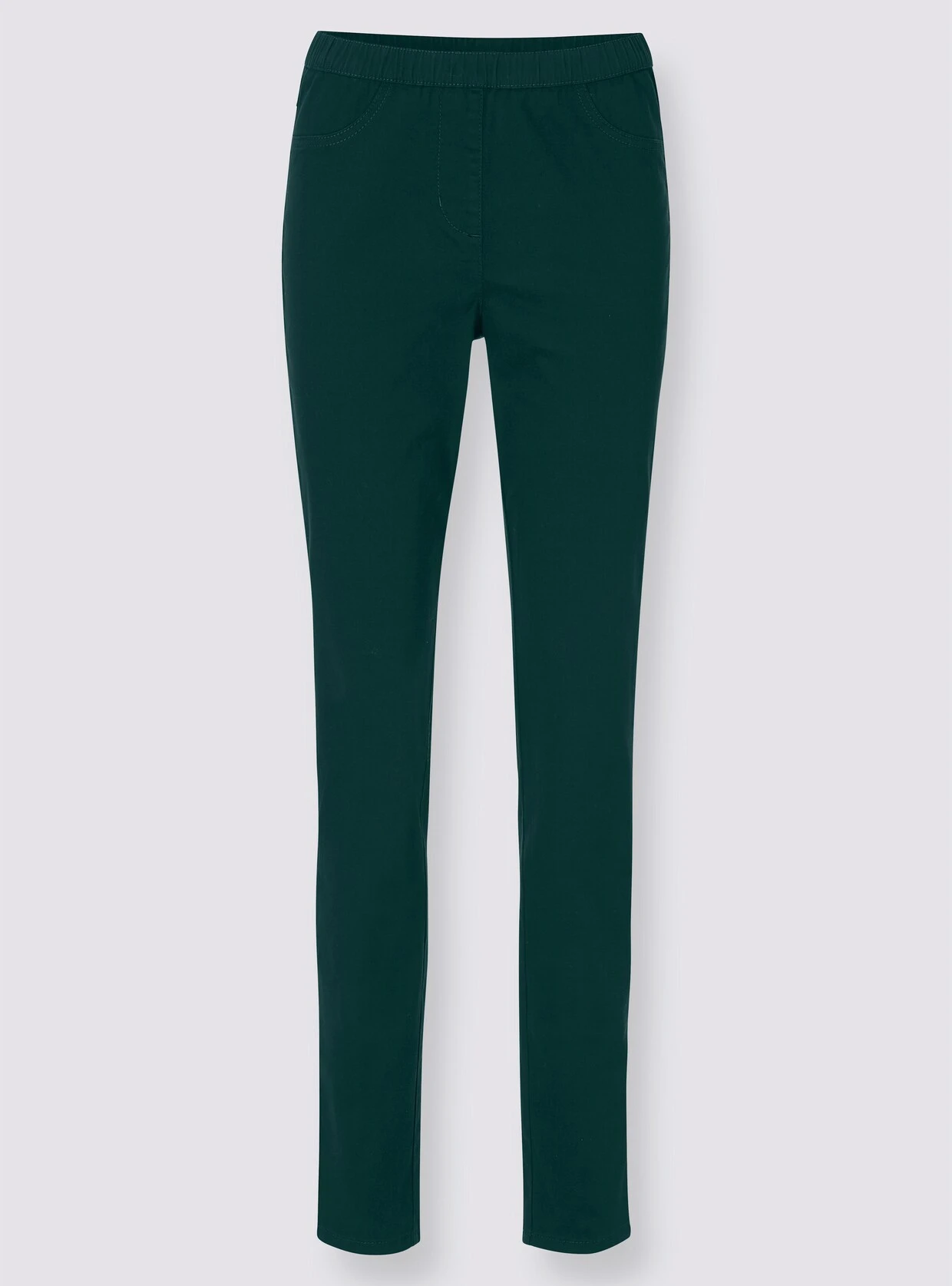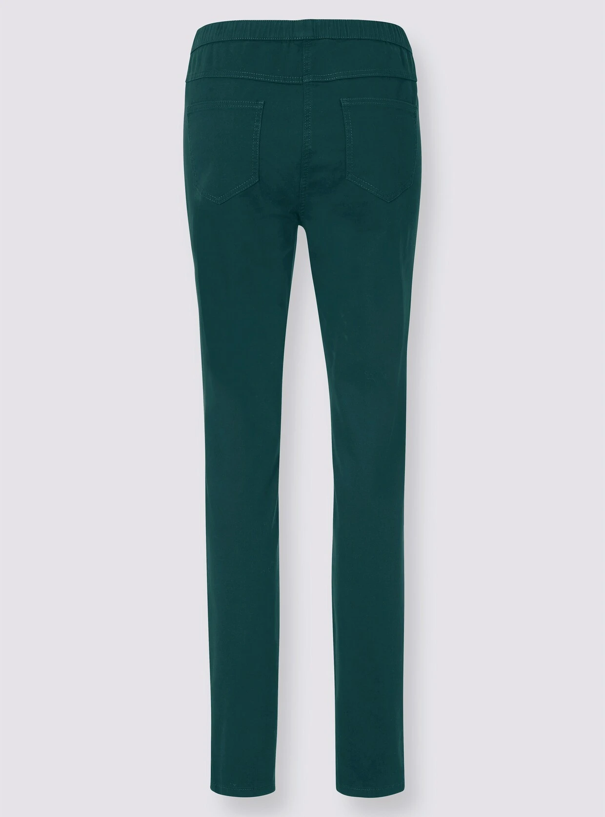 Die Jeans zaubert durch den schmalen Schnitt und die anschmiegsame Stretch-Qualität eine optisch schlankere Silhouette. Mit komfortablem Rundum-Dehnbund, der jede Bewegung mitmacht, imitierten Taschen vorne und 2 Gesäßtaschen.