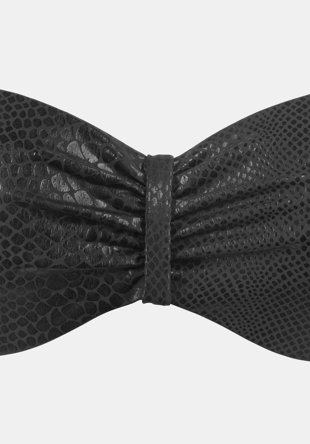Extravaganter Bügel-Bandeau-Bikini von JETTE, kreiert von der Designerin Jette Joop. Unifarbenes Design im Animal-Look mit glänzender Beschichtung. Wattierte Cups. Abnehmbare Träger. Hose mit Zierbändern seitlich. Trageangenehme Qualität mit recyceltem Polyamid.