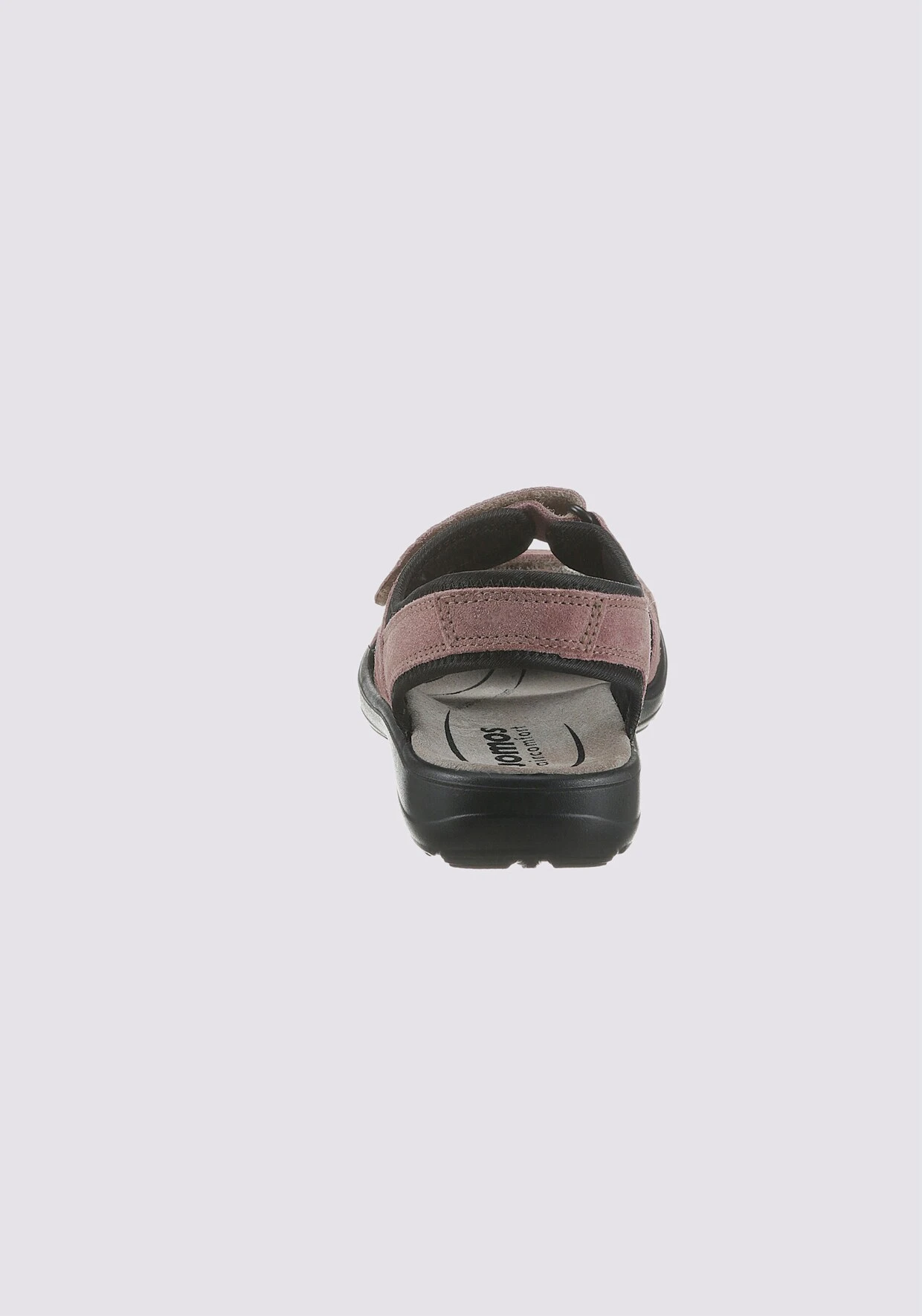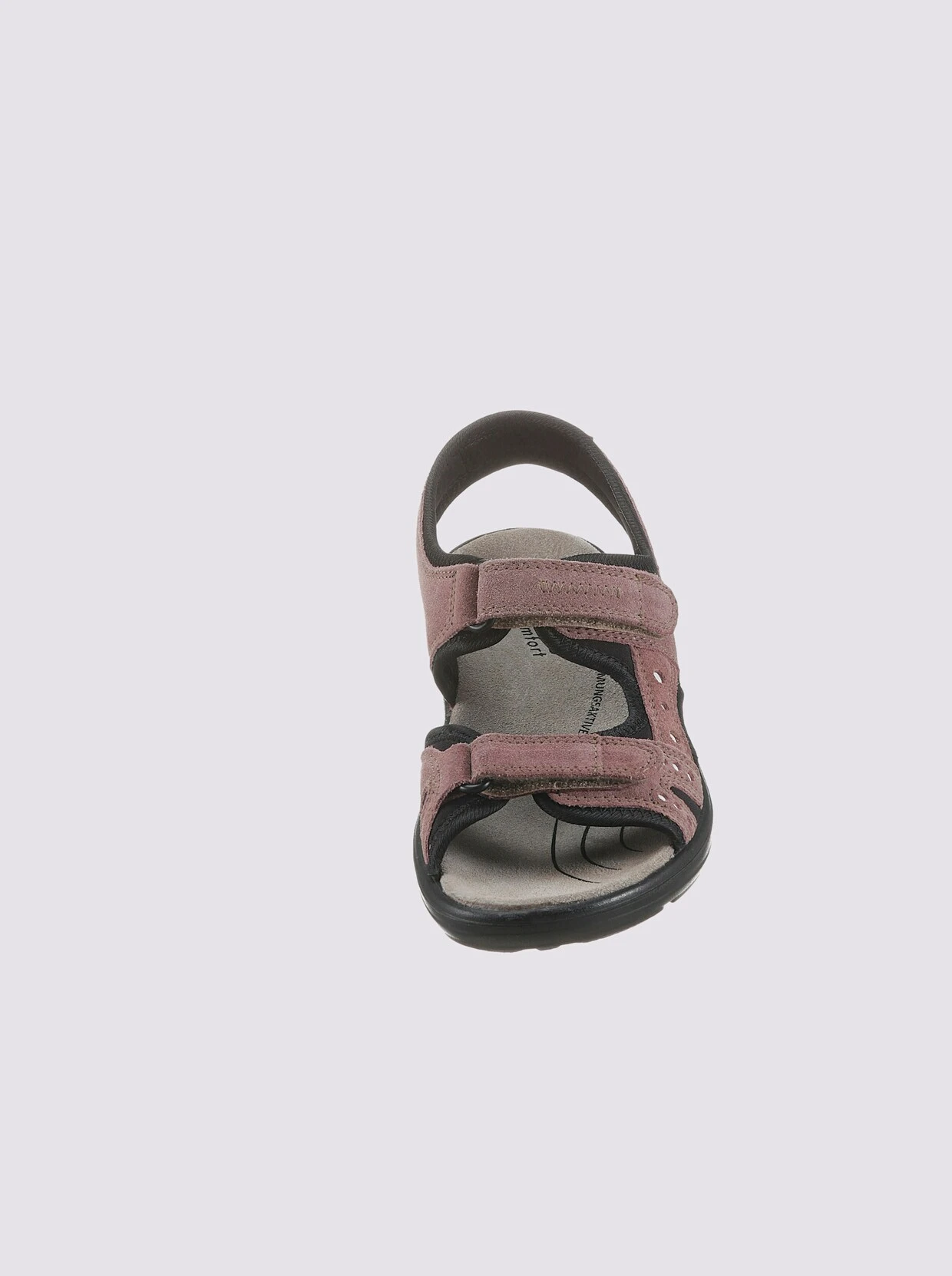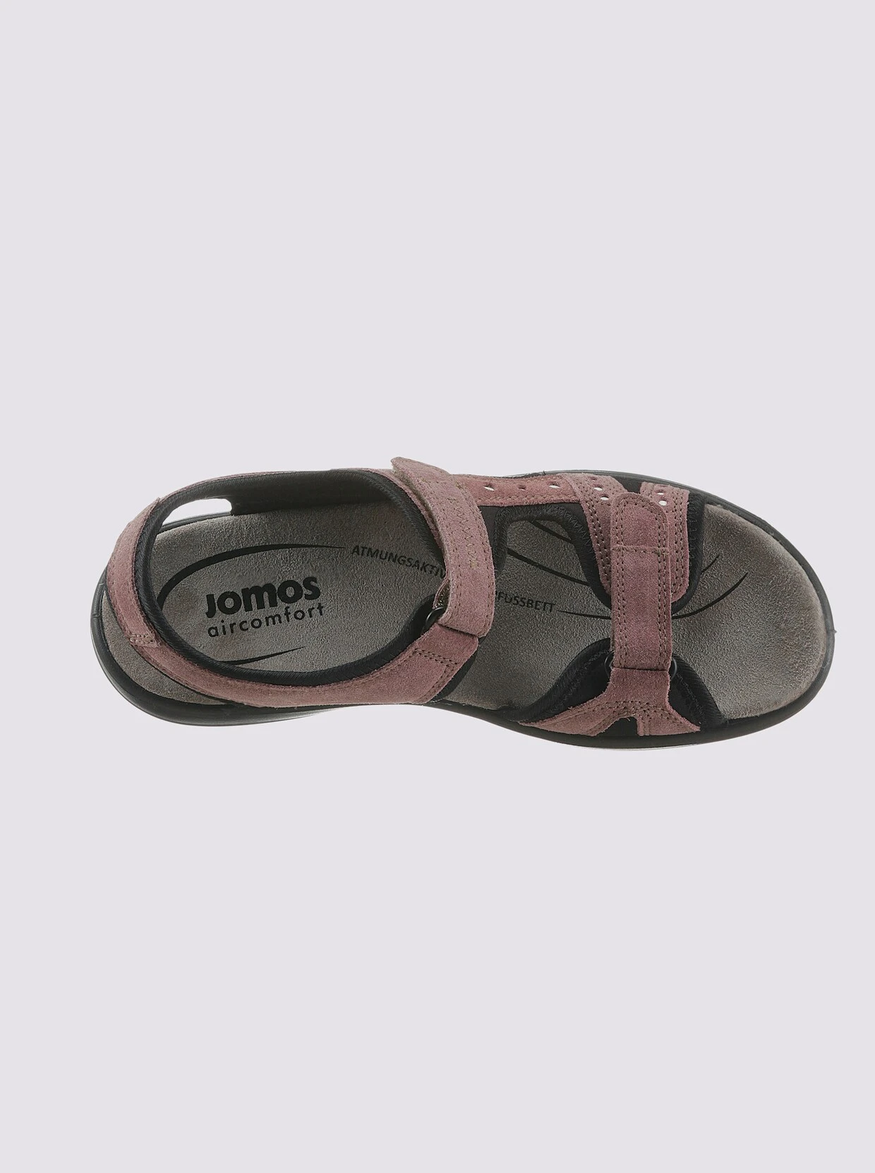 Sandale in wunderbar leichter und komfortabler Verarbeitung von Jomos. Obermaterial aus samtweichem Veloursleder, Innenfutter aus Textil. Super softes Fußbett mit Veloursleder-Bezug. Praktischer Klettverschluss. Antishock-System für ein Laufgefühl wie auf Wolken! Flexible PUR-Laufsohle mit ca. 25 mm Absatz. Weite H.