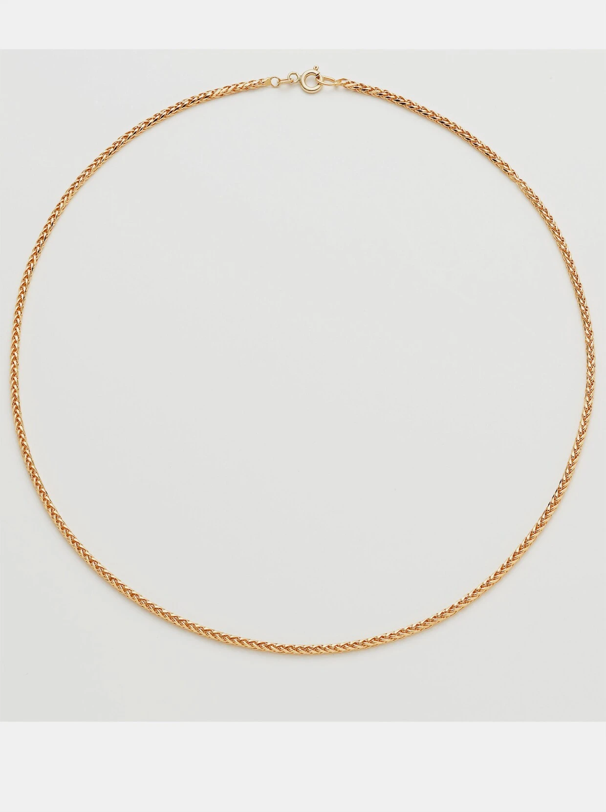Halbmassiv gearbeitete Kette im attraktiven „Zopf“-Design. 8-fach runddiamantiert. Aus 375er Gelbgold. Länge ca. 45 cm. Breite ca. 2,6 mm. Mit Karabinerverschluss.
